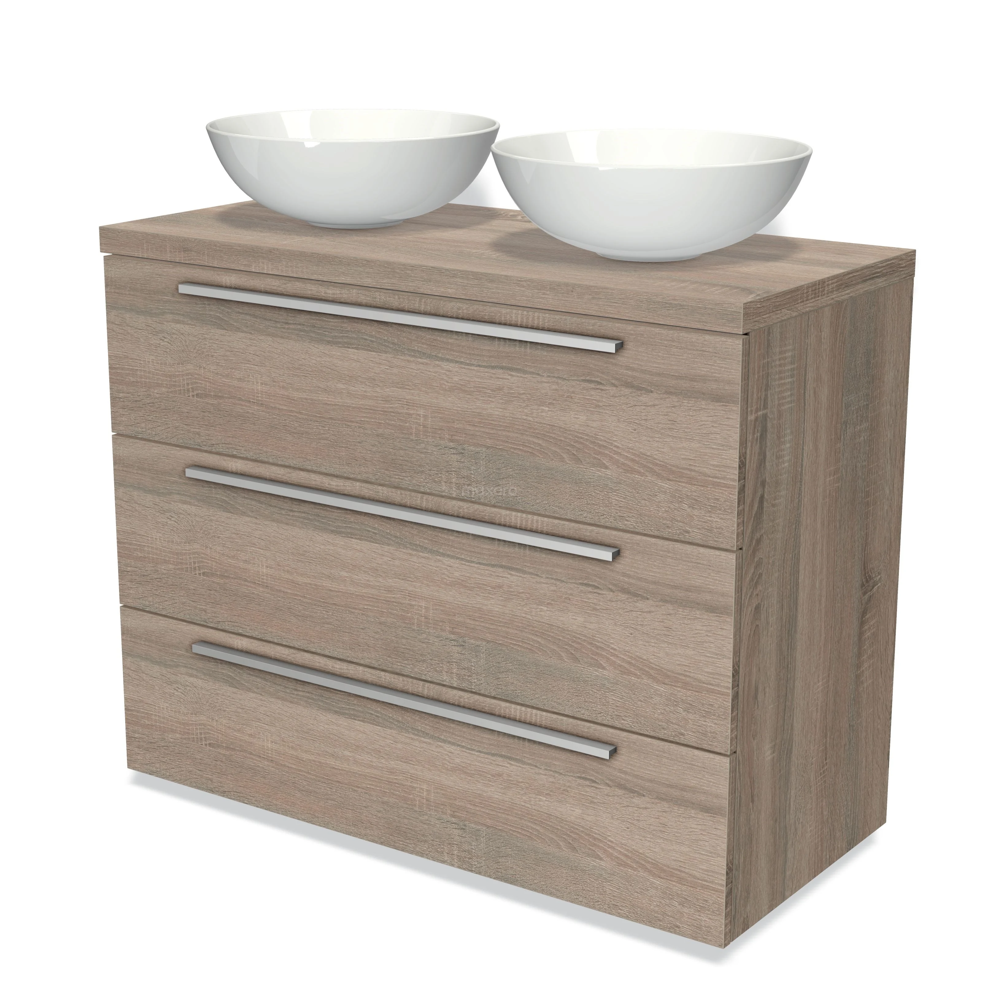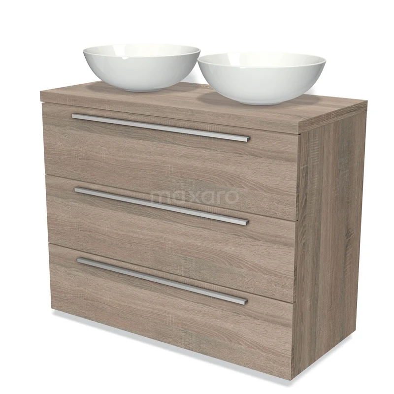 Modulo Plato Badmöbel mit Aufsatzwaschbecken | 100 cm Eiche Flach front Eiche blatt 3 Schubladen