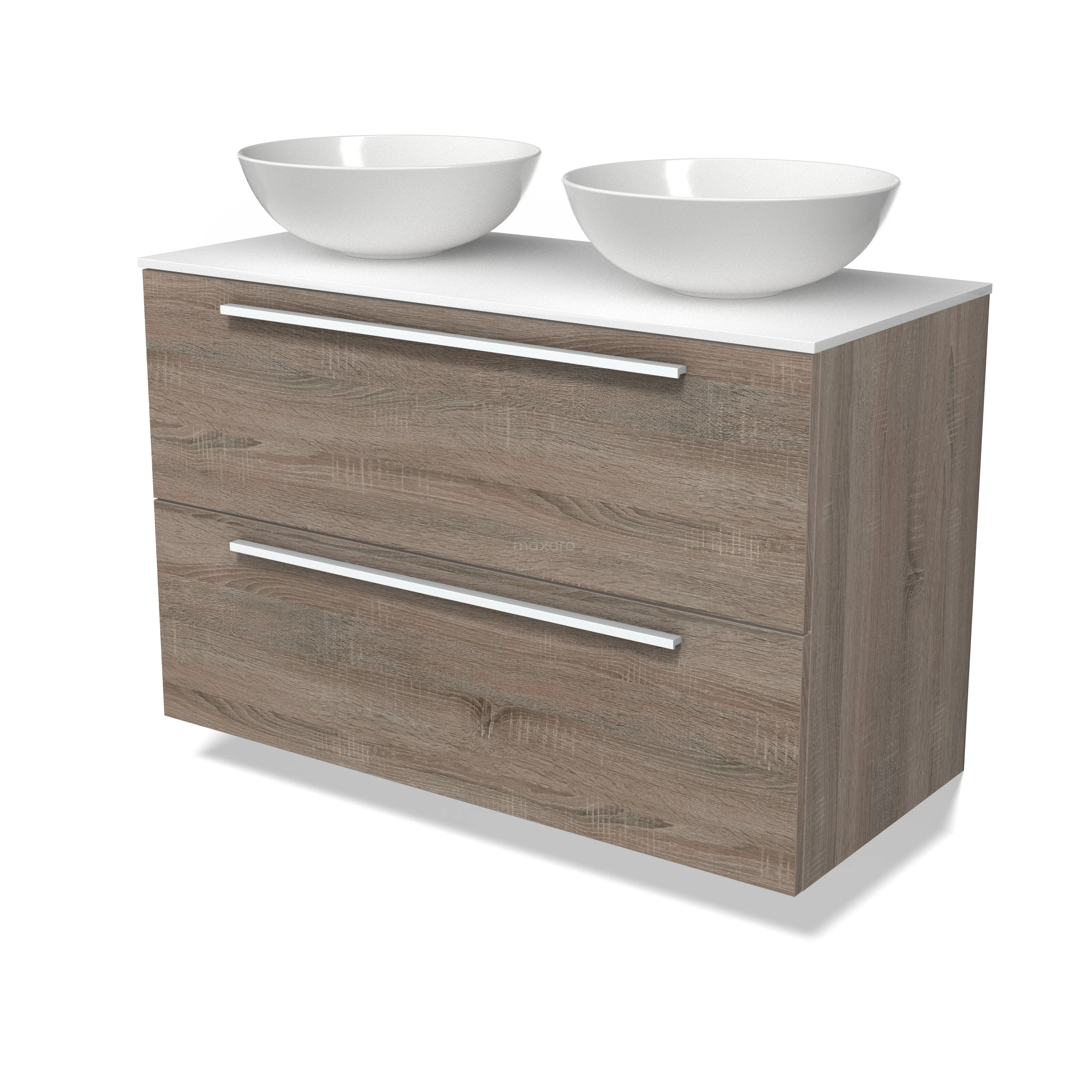 Modulo Plato Badmöbel mit Aufsatzwaschbecken | 100 cm Eiche Flach front Solid Surface blatt 2 übereinanderliegende Schubladen