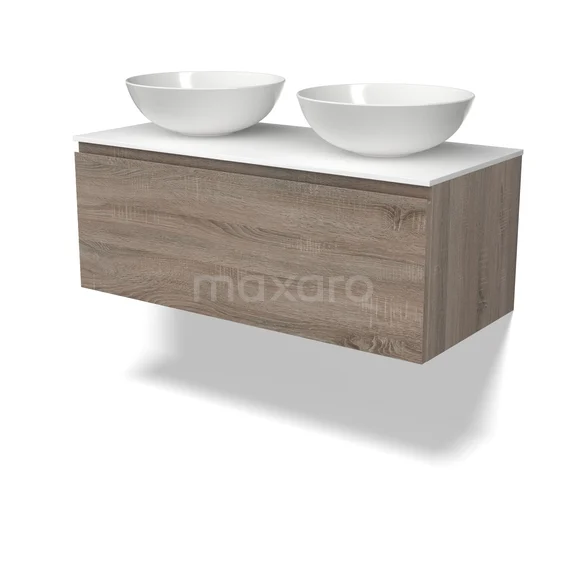 Modulo Plato Badmöbel mit Aufsatzwaschbecken | 100 cm Eiche Grifflos front Solid Surface blatt 1 Schublade