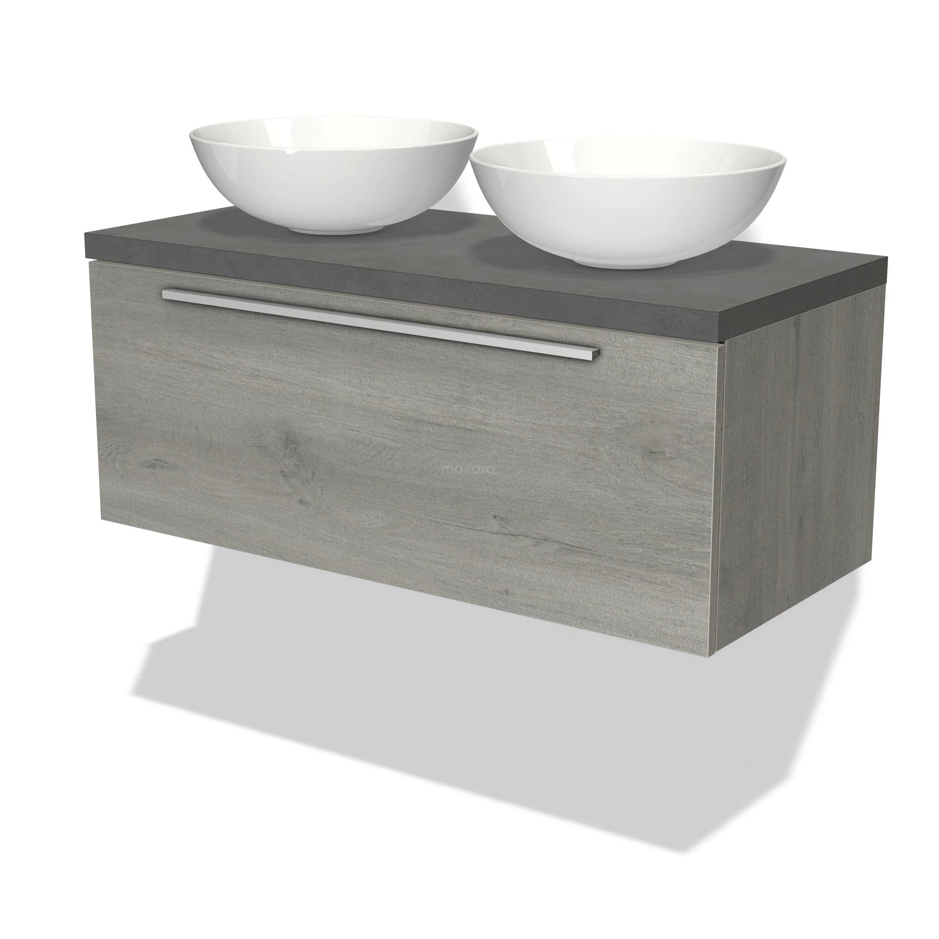 Modulo Plato Badmöbel mit Aufsatzwaschbecken | 100 cm Graue Eiche Flach front Dunkelgrauer Beton blatt 1 Schublade