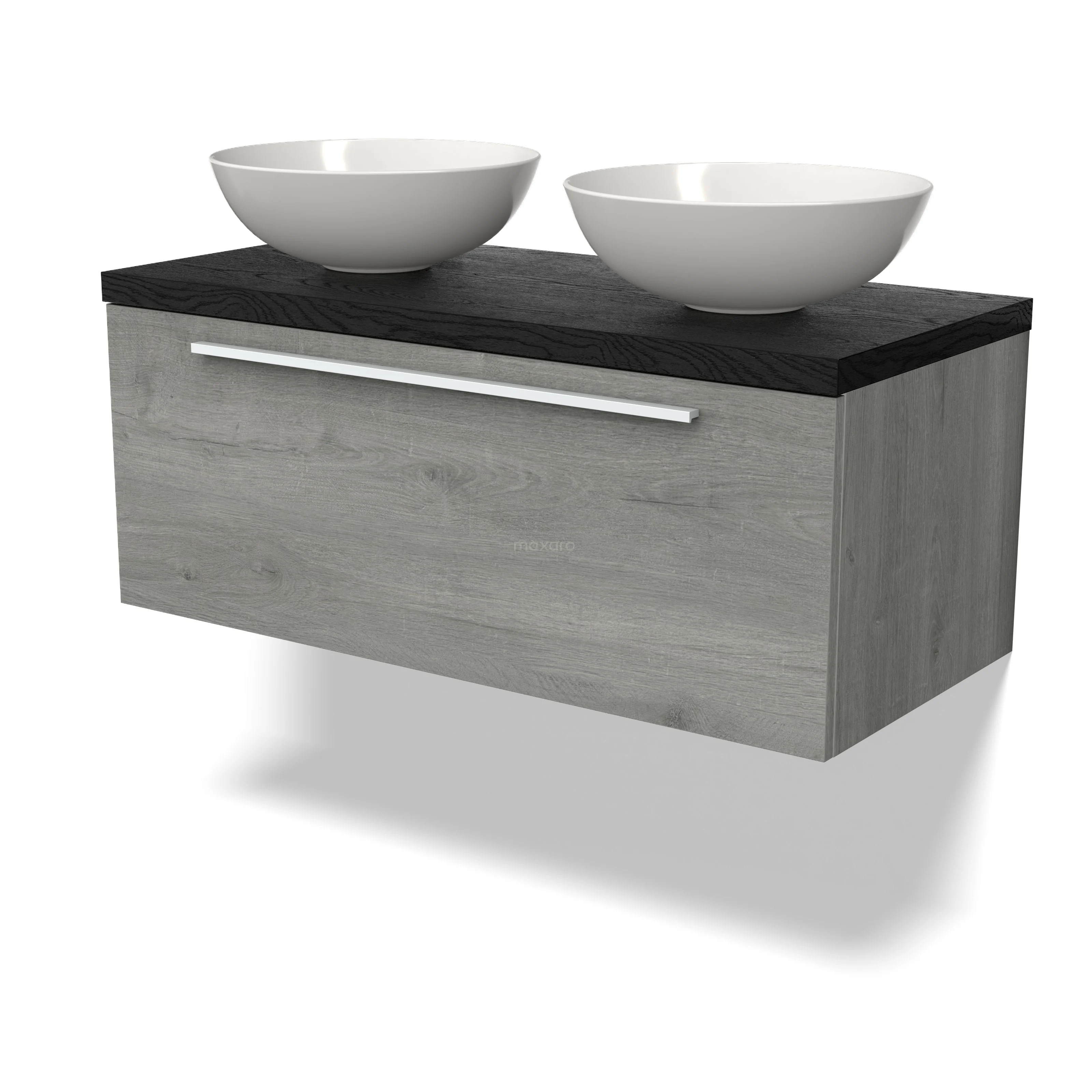 Modulo Plato Badmöbel mit Aufsatzwaschbecken | 100 cm Graue Eiche Flach front Schwarze Eiche blatt 1 Schublade