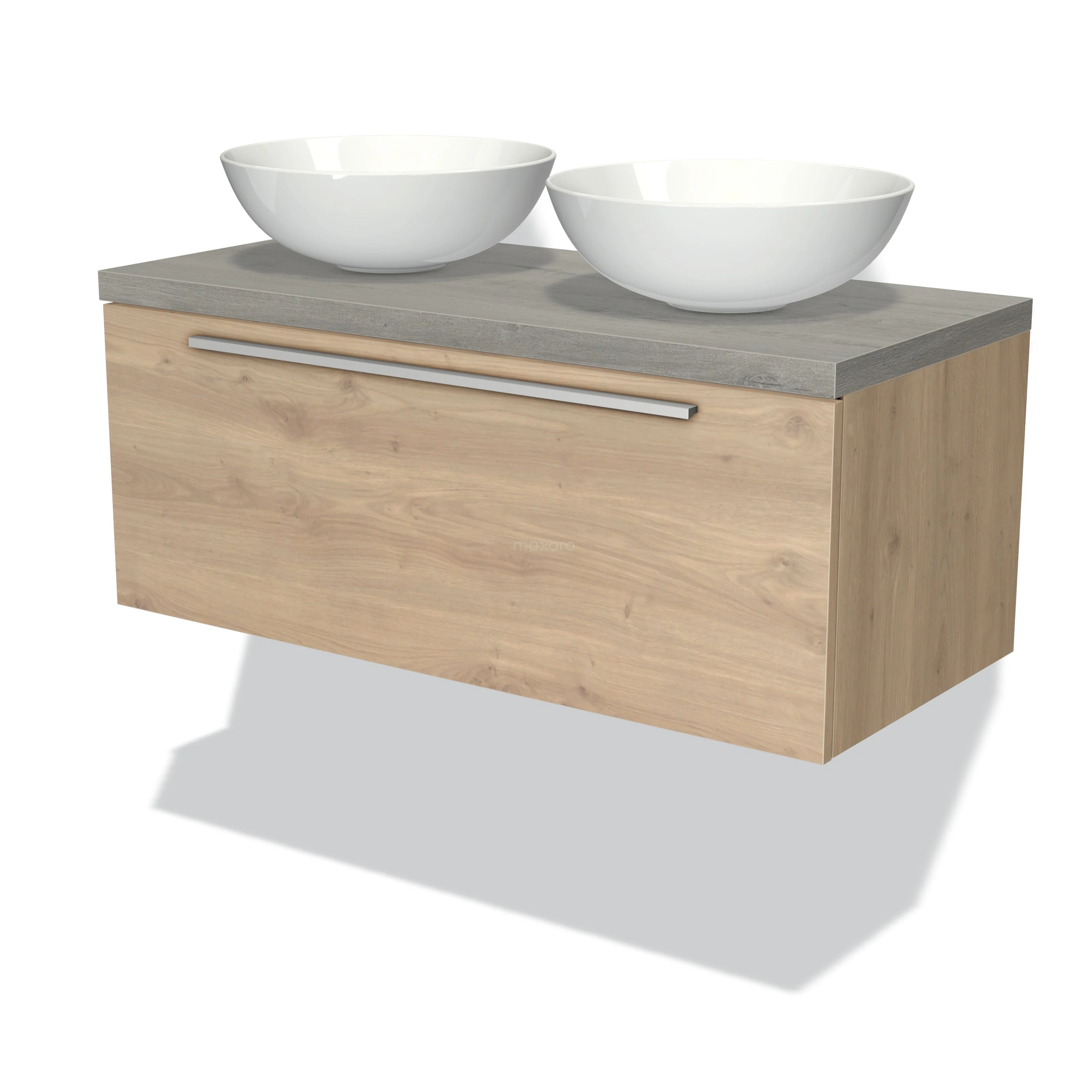 Modulo Plato Badmöbel mit Aufsatzwaschbecken | 100 cm Hellbraune Eiche Flach front Graue Eiche blatt 1 Schublade