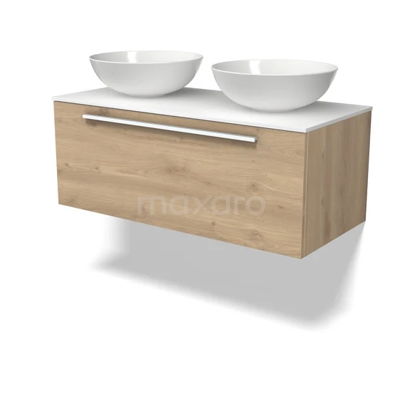 Modulo Plato Badmöbel mit Aufsatzwaschbecken | 100 cm Hellbraune Eiche Flach front Solid Surface blatt 1 Schublade