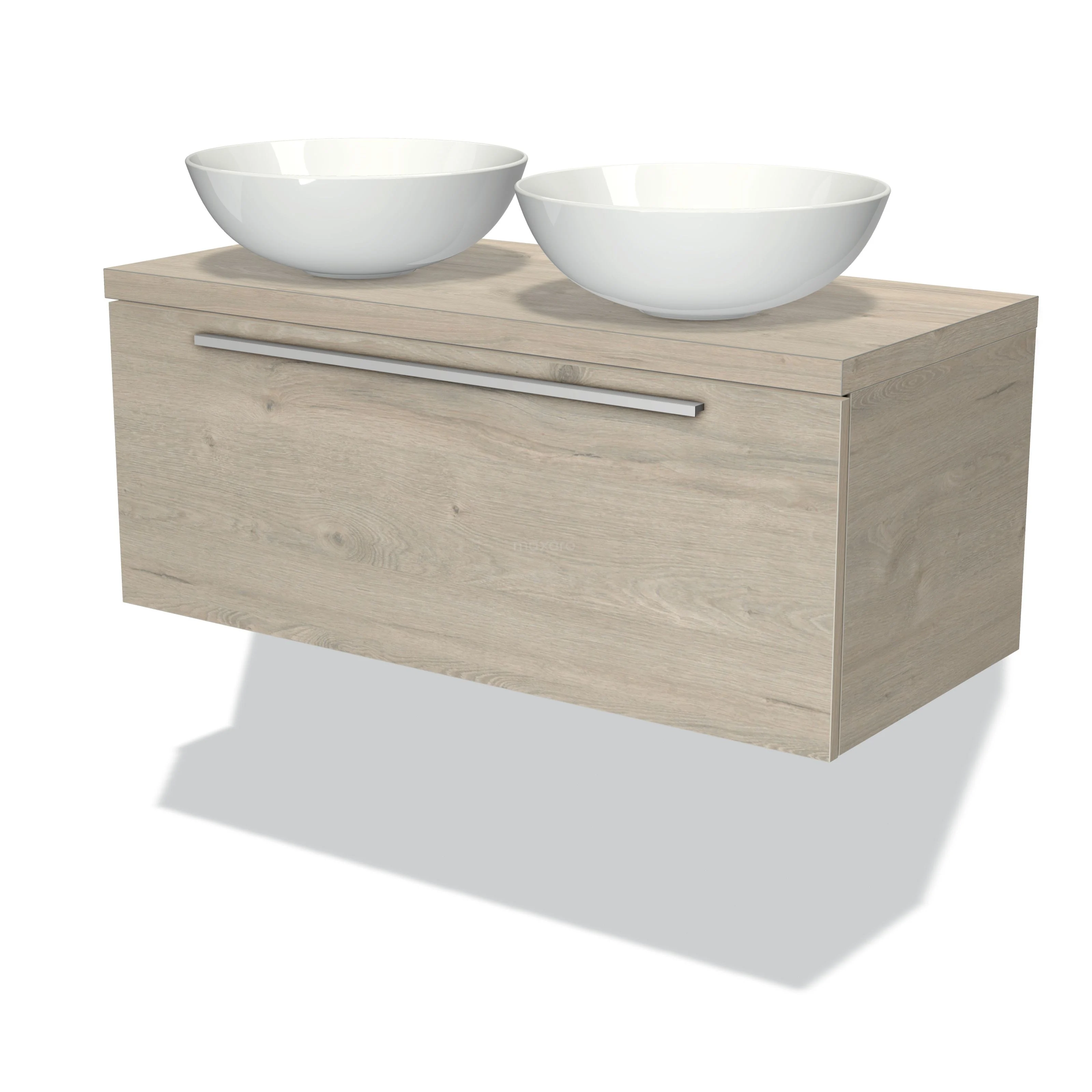 Modulo Plato Badmöbel mit Aufsatzwaschbecken | 100 cm Hellgraue Eiche Flach front Hellgraue Eiche blatt 1 Schublade