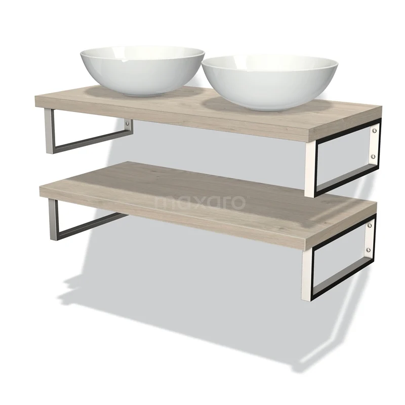 Modulo Plato Badmöbel mit Aufsatzwaschbecken | 100 cm Hellgraue Eiche front Hellgraue Eiche blatt 2 Waschtischplatten