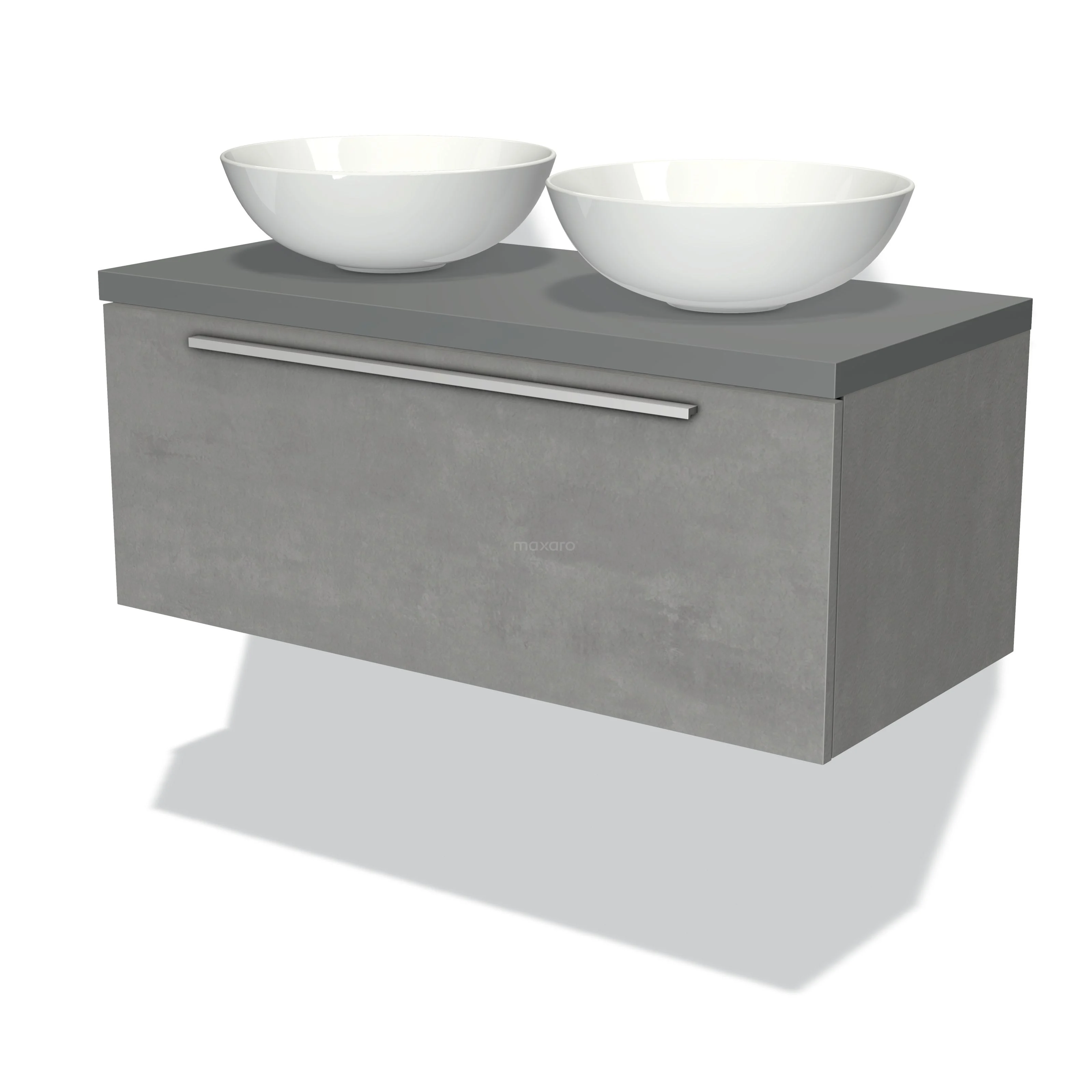 Modulo Plato Badmöbel mit Aufsatzwaschbecken | 100 cm Hellgrauer Beton Flach front Mittelgrau blatt 1 Schublade