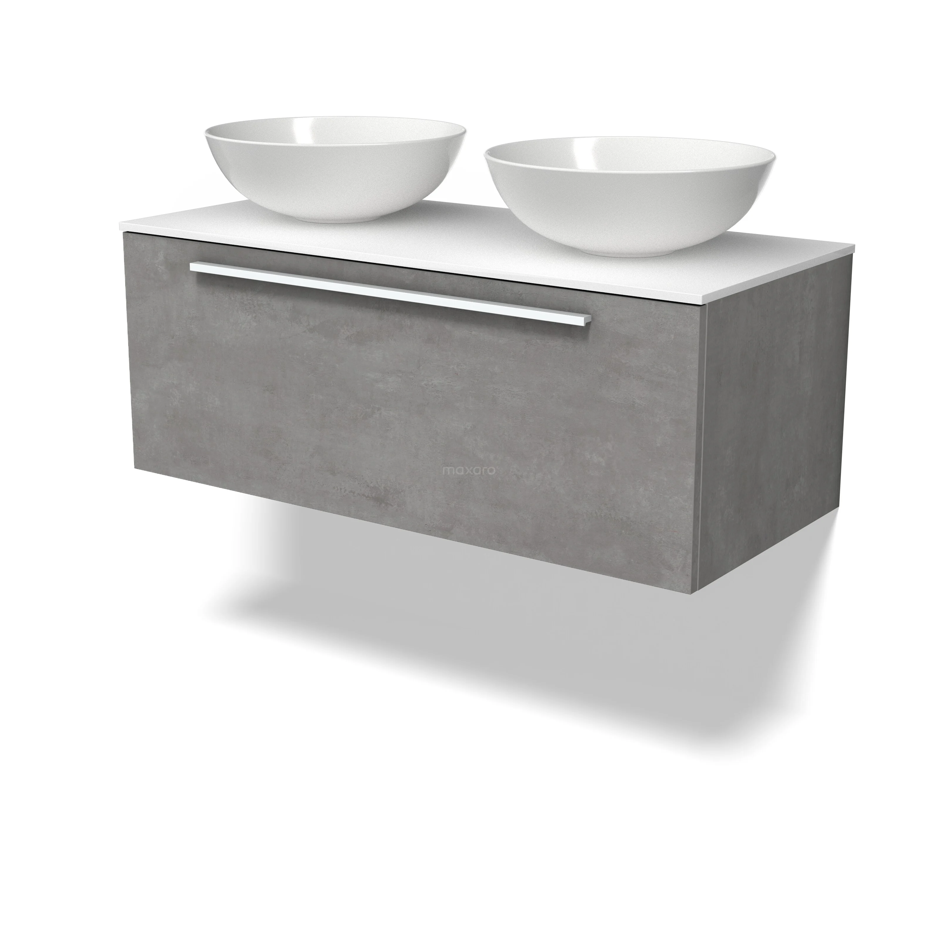 Modulo Plato Badmöbel mit Aufsatzwaschbecken | 100 cm Hellgrauer Beton Flach front Solid Surface blatt 1 Schublade