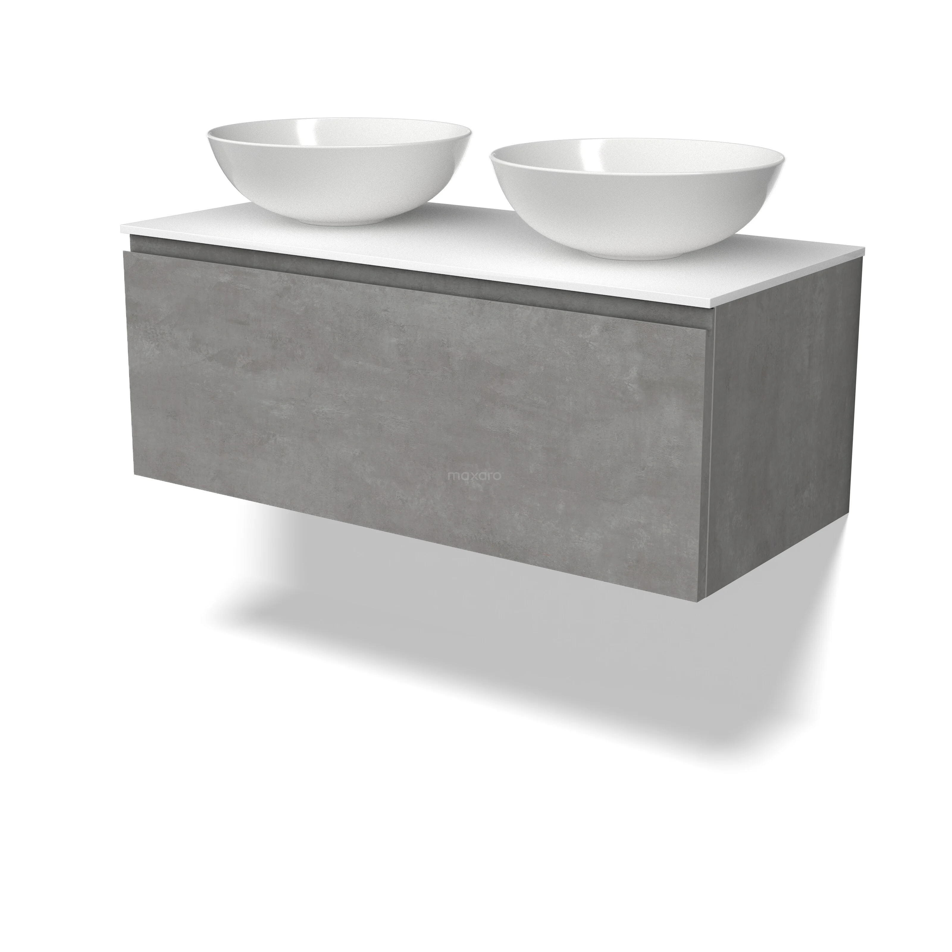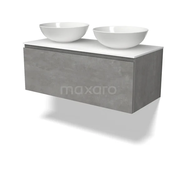 Modulo Plato Badmöbel mit Aufsatzwaschbecken | 100 cm Hellgrauer Beton Grifflos front Solid Surface blatt 1 Schublade