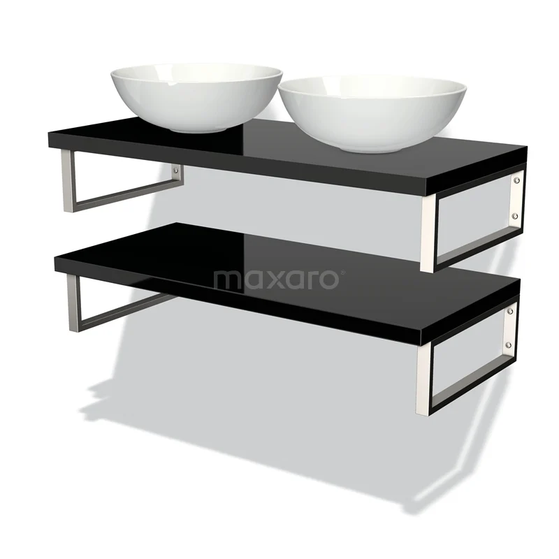 Modulo Plato Badmöbel mit Aufsatzwaschbecken | 100 cm Hochglanz Schwarz front Hochglanz Schwarz blatt 2 Waschtischplatten