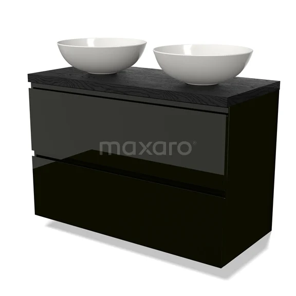 Modulo Plato Badmöbel mit Aufsatzwaschbecken | 100 cm Hochglanz Schwarz Grifflos front Schwarze Eiche blatt 2 übereinanderliegende Schubladen