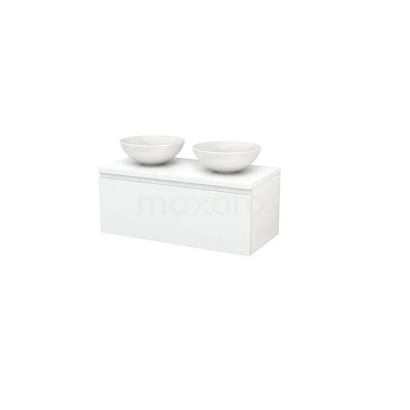 Modulo+ Plato Badmöbel mit Aufsatzwaschbecken | 100 cm Hochglanz Weiß Grifflos front Hochglanz Weiß blatt 1 Schublade