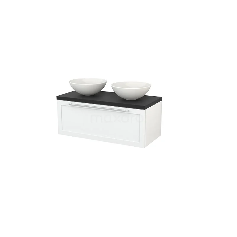 Modulo+ Plato Badmöbel mit Aufsatzwaschbecken | 100 cm Hochglanz Weiß Rahmen front Kohlenstoff blatt 1 Schublade
