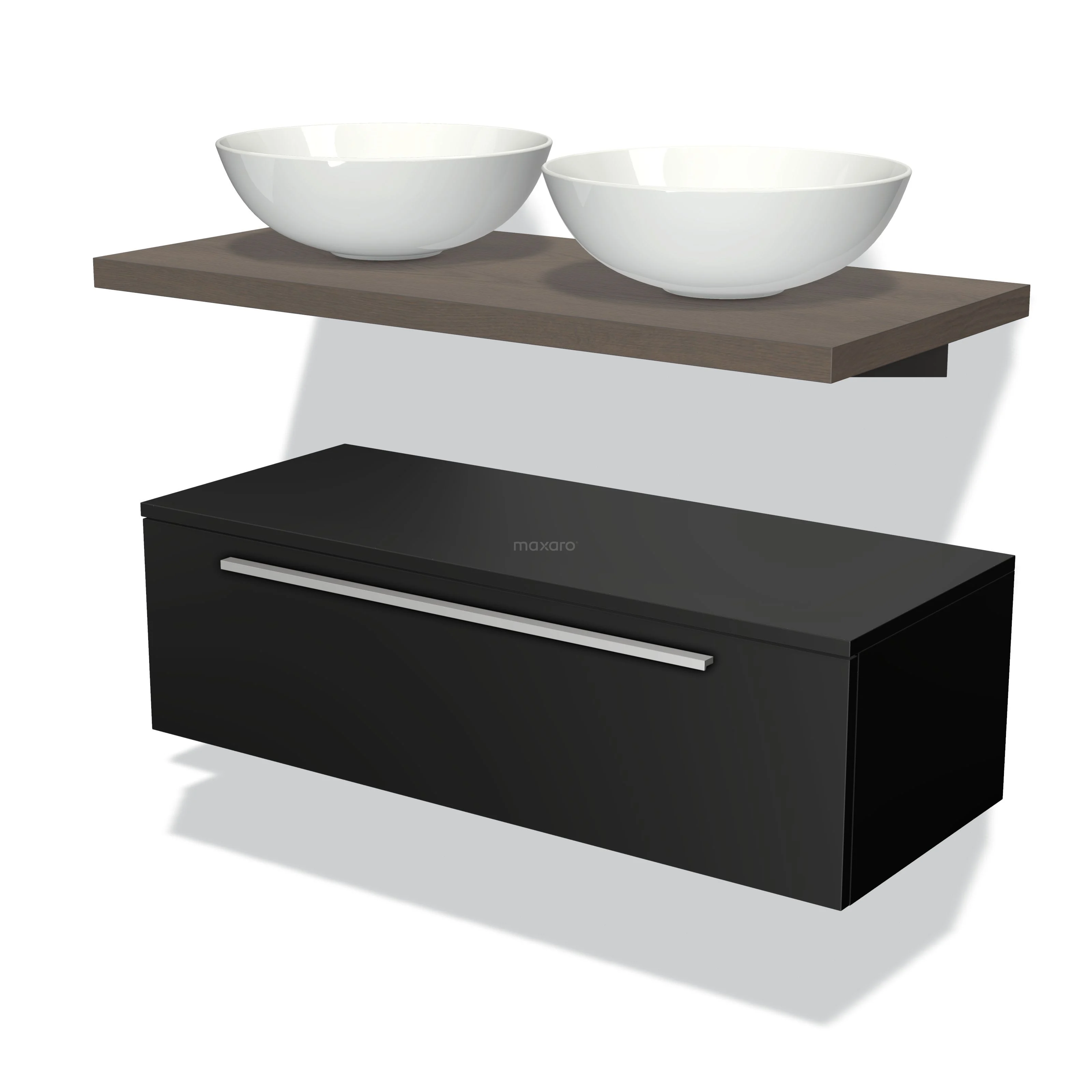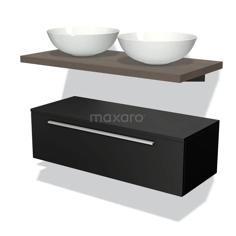 Modulo Plato Badmöbel mit Aufsatzwaschbecken | 100 cm Matt Schwarz Flach front Dunkelbraune Eiche blatt Tief hängend