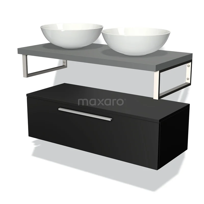 Modulo Plato Badmöbel mit Aufsatzwaschbecken | 100 cm Matt Schwarz Flach front Mittelgrau blatt Tief hängend