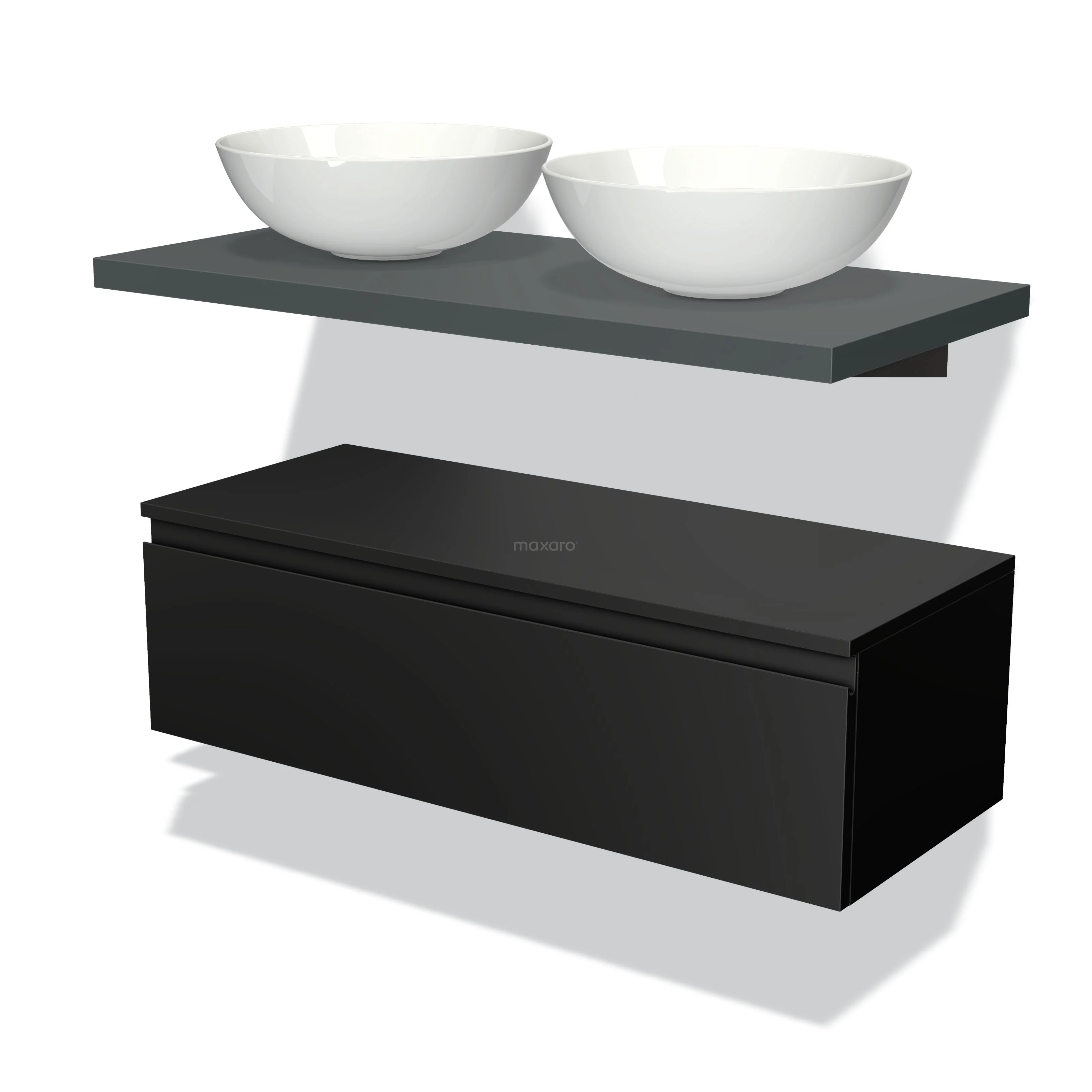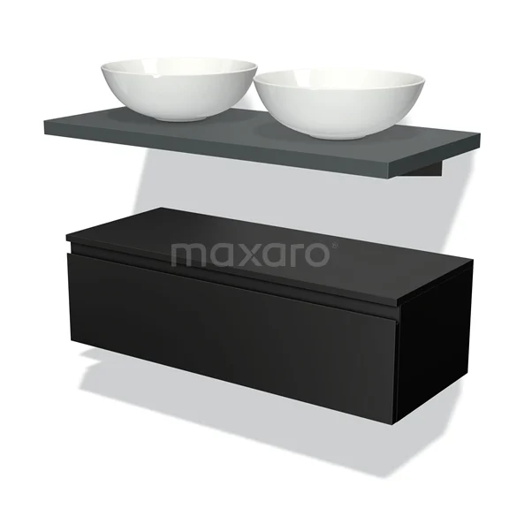 Modulo Plato Badmöbel mit Aufsatzwaschbecken | 100 cm Matt Schwarz Grifflos front Dunkelgrau blatt Tief hängend