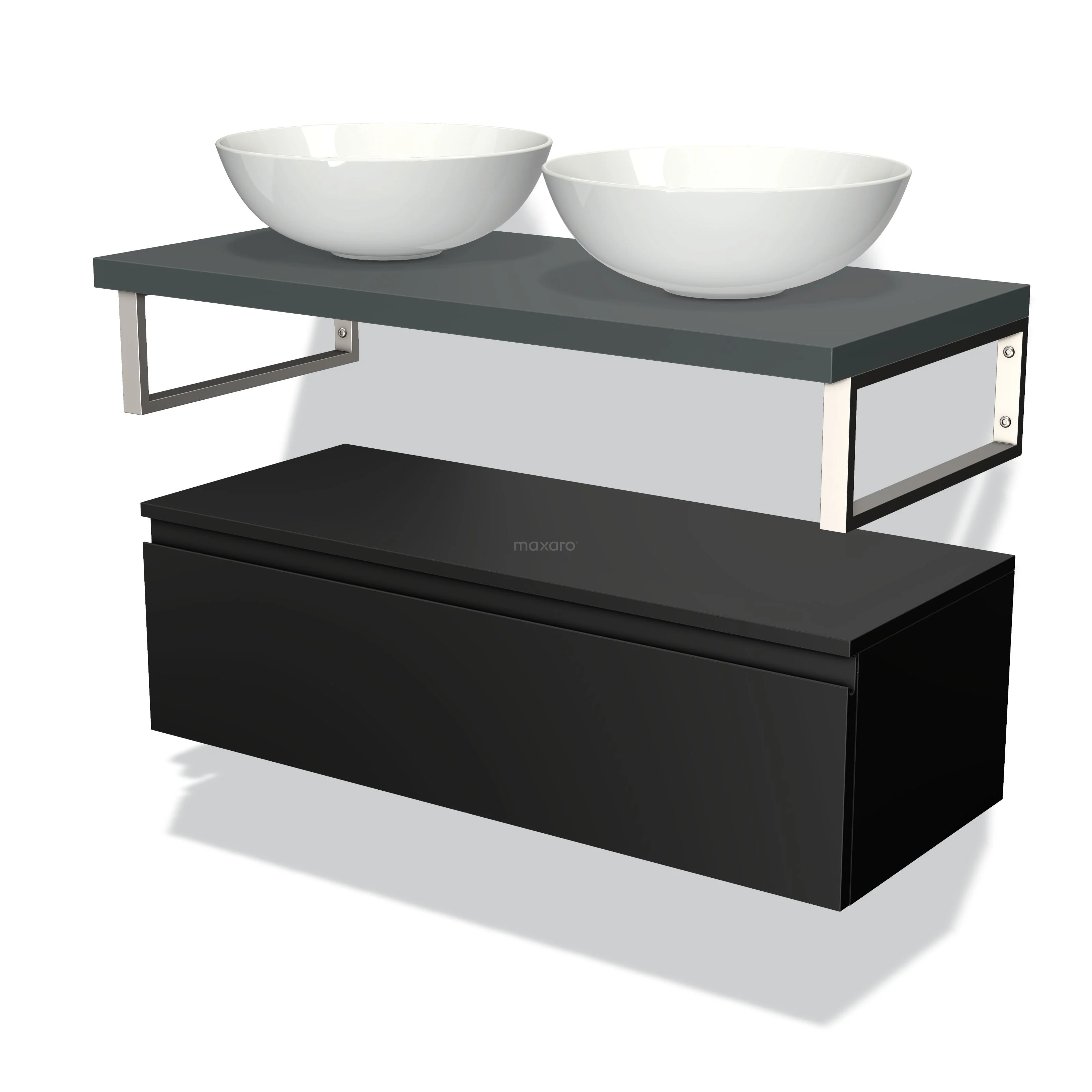 Modulo Plato Badmöbel mit Aufsatzwaschbecken | 100 cm Matt Schwarz Grifflos front Dunkelgrau blatt Tief hängend