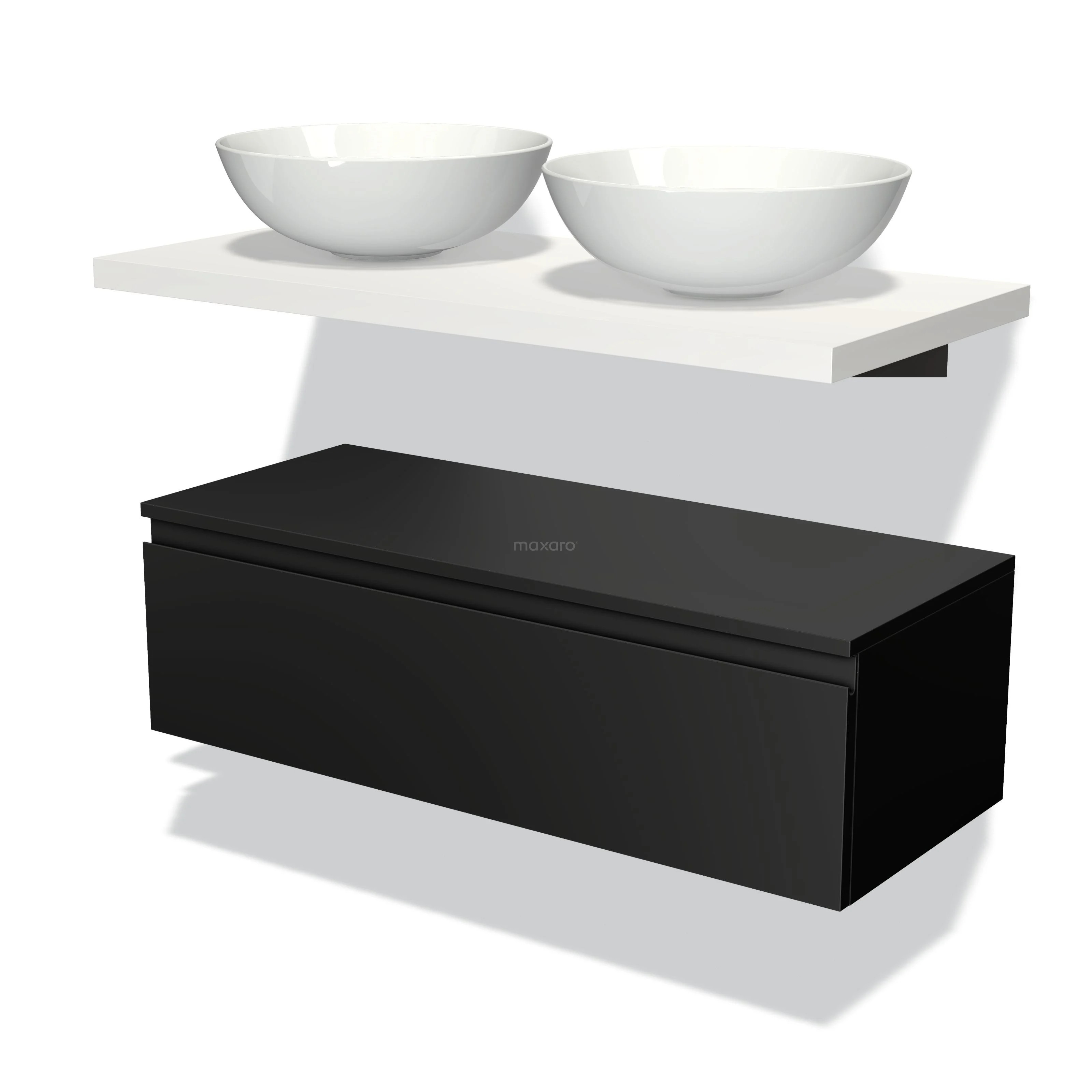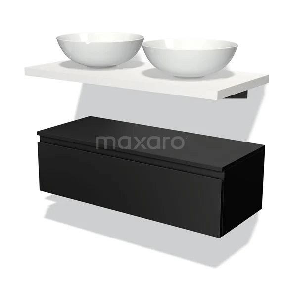 Modulo Plato Badmöbel mit Aufsatzwaschbecken | 100 cm Matt Schwarz Grifflos front Matt Weiß blatt Tief hängend