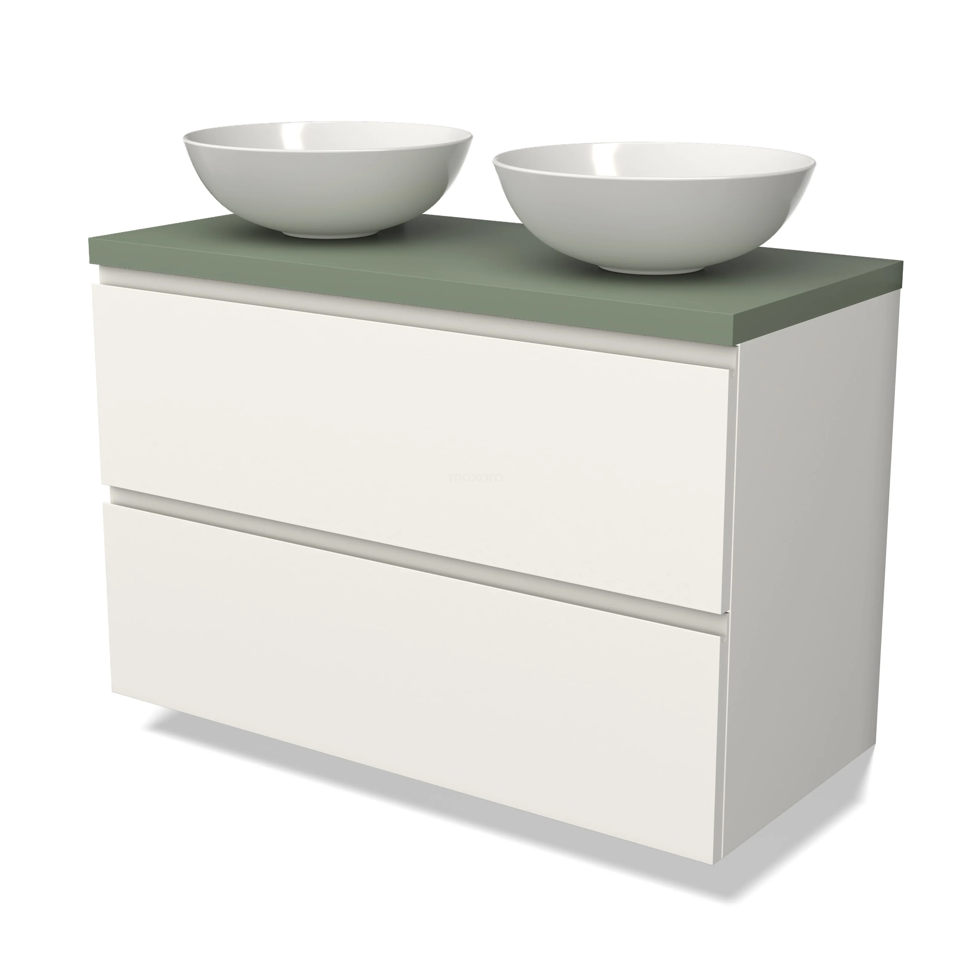 Modulo Plato Badmöbel mit Aufsatzwaschbecken | 100 cm Matt Weiß Grifflos front Salbeigrün blatt 2 übereinanderliegende Schubladen