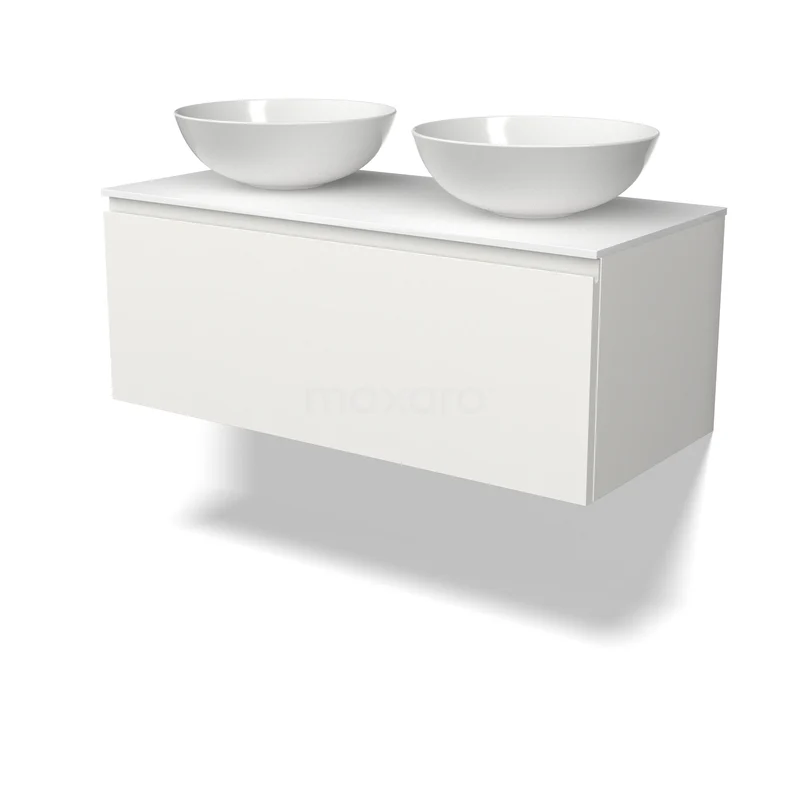Modulo Plato Badmöbel mit Aufsatzwaschbecken | 100 cm Matt Weiß Grifflos front Solid Surface blatt 1 Schublade