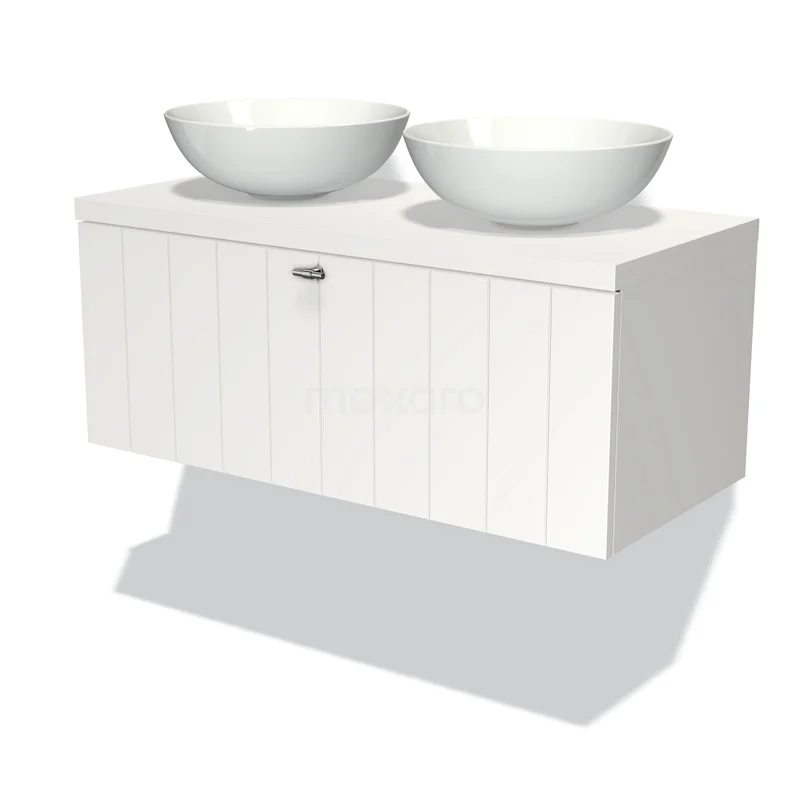 Modulo Plato Badmöbel mit Aufsatzwaschbecken | 100 cm Matt Weiß Lamelle front Matt Weiß blatt 1 Schublade