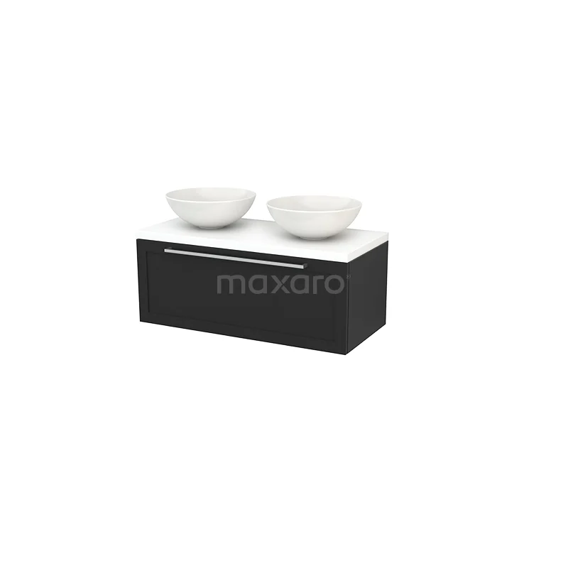 Modulo+ Plato Badmöbel mit Aufsatzwaschbecken | 100 cm Matt Weiß Rahmen front Matt Weiß blatt 1 Schublade