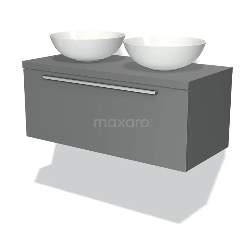 Modulo Plato Badmöbel mit Aufsatzwaschbecken | 100 cm Mittelgrau Flach front Mittelgrau blatt 1 Schublade