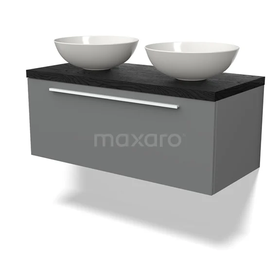 Modulo Plato Badmöbel mit Aufsatzwaschbecken | 100 cm Mittelgrau Flach front Schwarze Eiche blatt 1 Schublade