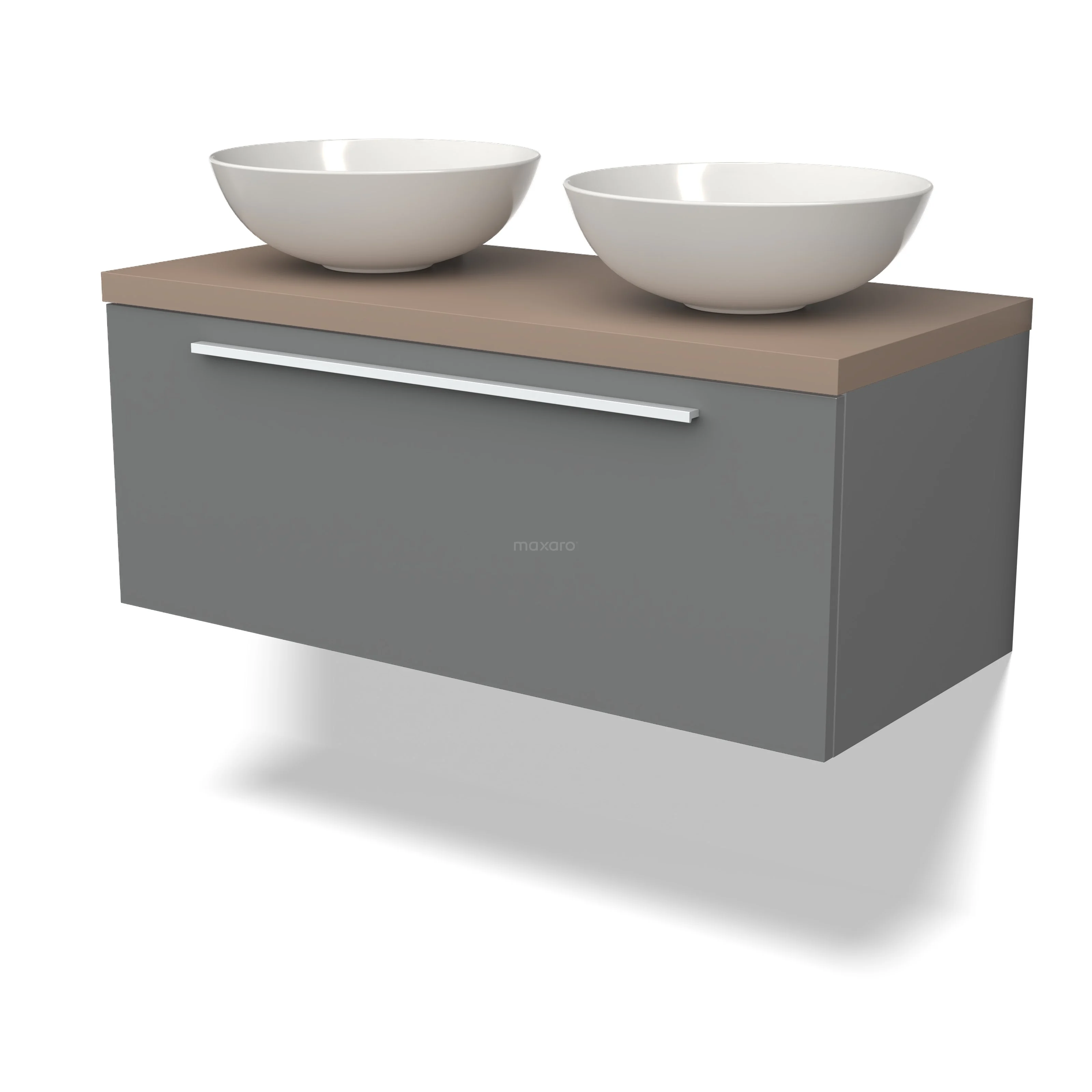 Modulo Plato Badmöbel mit Aufsatzwaschbecken | 100 cm Mittelgrau Flach front Taupe blatt 1 Schublade