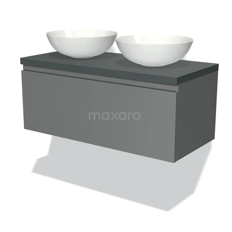 Modulo Plato Badmöbel mit Aufsatzwaschbecken | 100 cm Mittelgrau Grifflos front Dunkelgrau blatt 1 Schublade