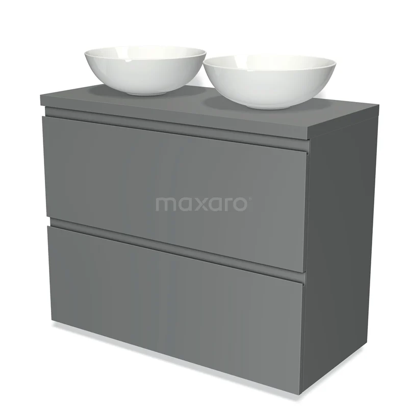 Modulo Plato Badmöbel mit Aufsatzwaschbecken | 100 cm Mittelgrau Grifflos front Mittelgrau blatt 2 hohe Schubladen übereinanderliegend