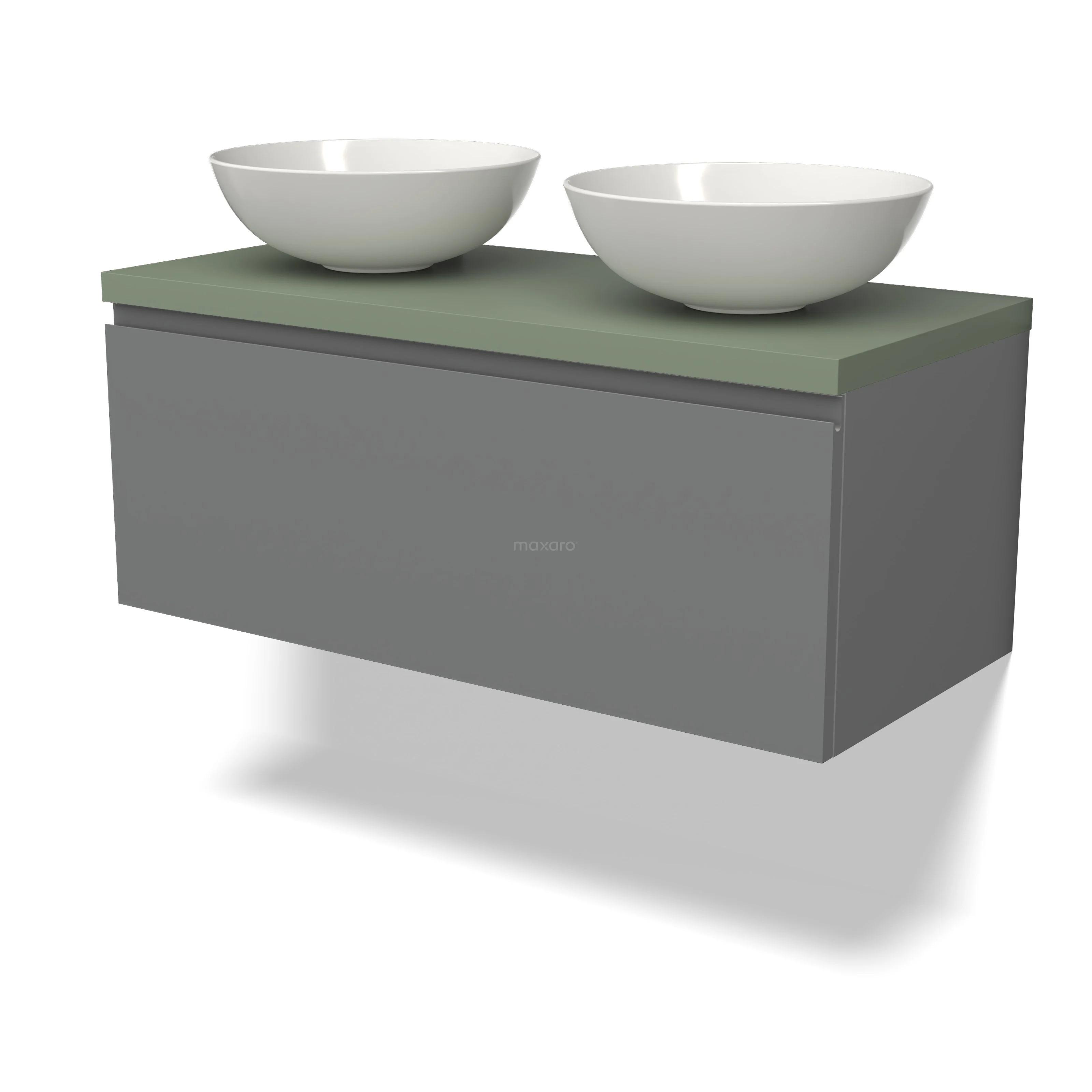 Modulo Plato Badmöbel mit Aufsatzwaschbecken | 100 cm Mittelgrau Grifflos front Salbeigrün blatt 1 Schublade