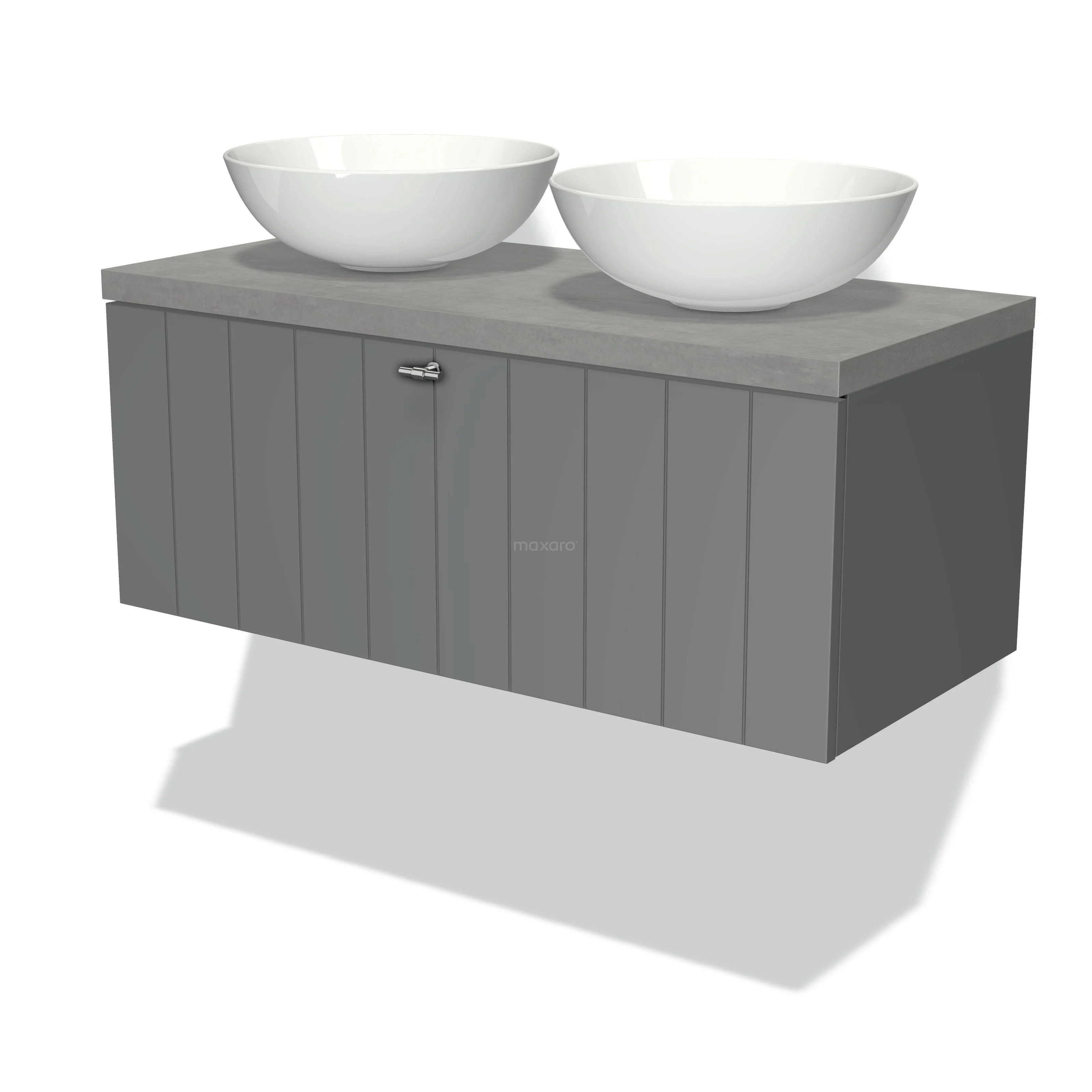 Modulo Plato Badmöbel mit Aufsatzwaschbecken | 100 cm Mittelgrau Lamelle front Hellgrauer Beton blatt 1 Schublade