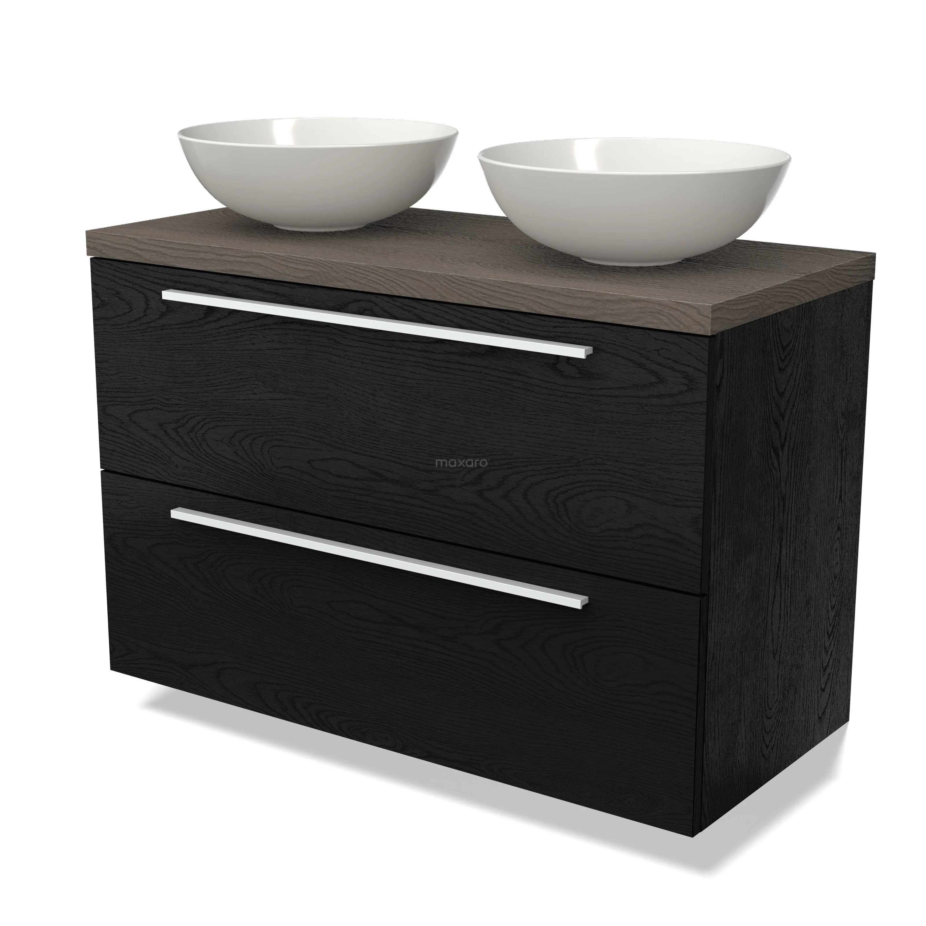 Modulo Plato Badmöbel mit Aufsatzwaschbecken | 100 cm Schwarze Eiche Flach front Dunkelbraune Eiche blatt 2 übereinanderliegende Schubladen