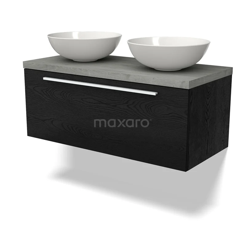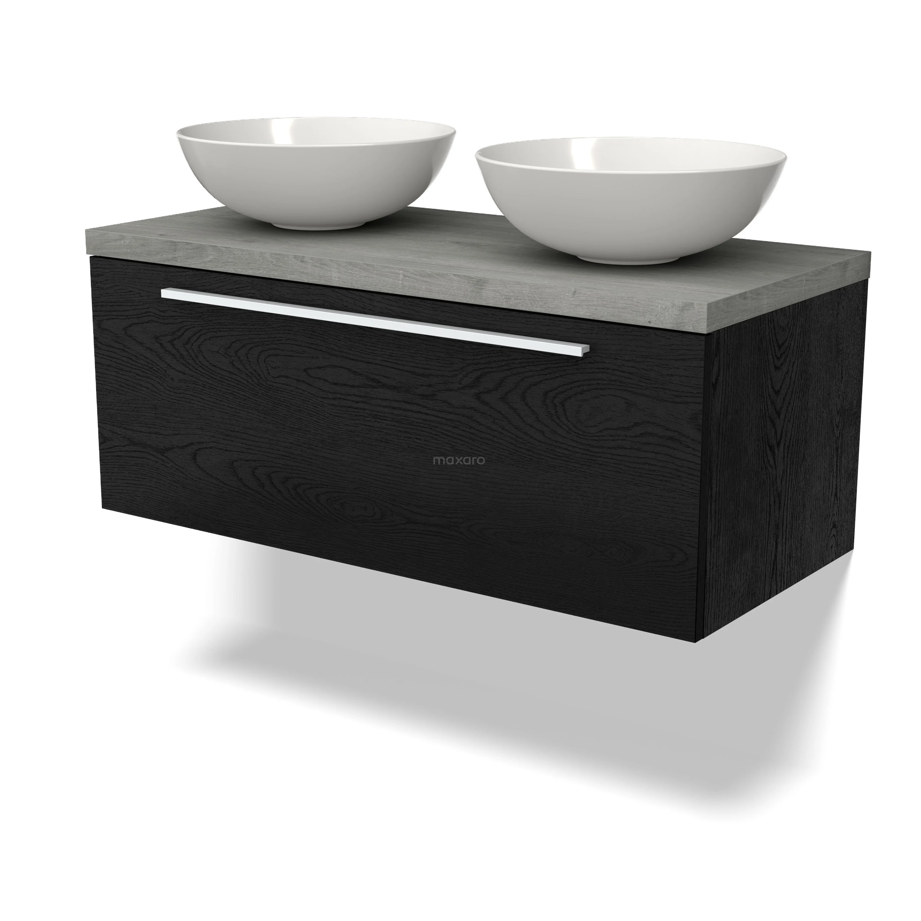 Modulo Plato Badmöbel mit Aufsatzwaschbecken | 100 cm Schwarze Eiche Flach front Graue Eiche blatt 1 Schublade