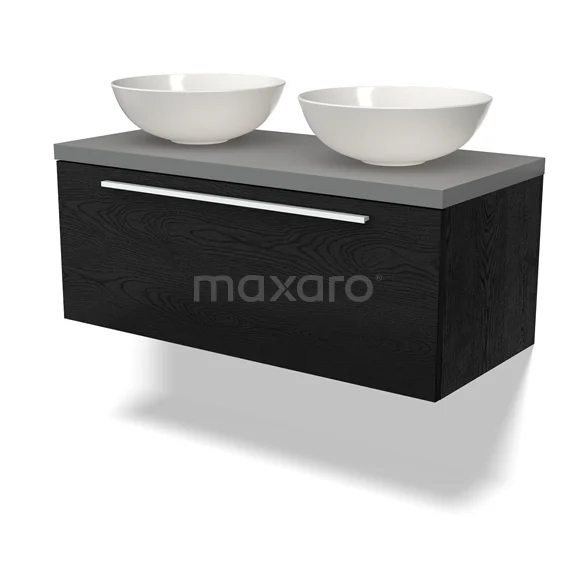 Modulo Plato Badmöbel mit Aufsatzwaschbecken | 100 cm Schwarze Eiche Flach front Mittelgrau blatt 1 Schublade