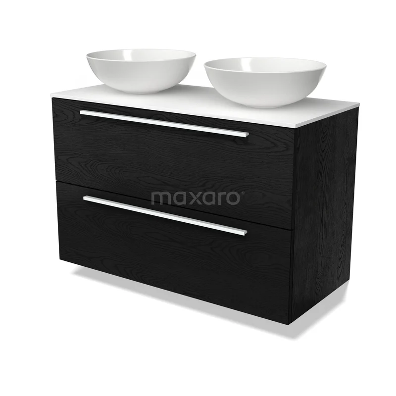 Modulo Plato Badmöbel mit Aufsatzwaschbecken | 100 cm Schwarze Eiche Flach front Solid Surface blatt 2 übereinanderliegende Schubladen