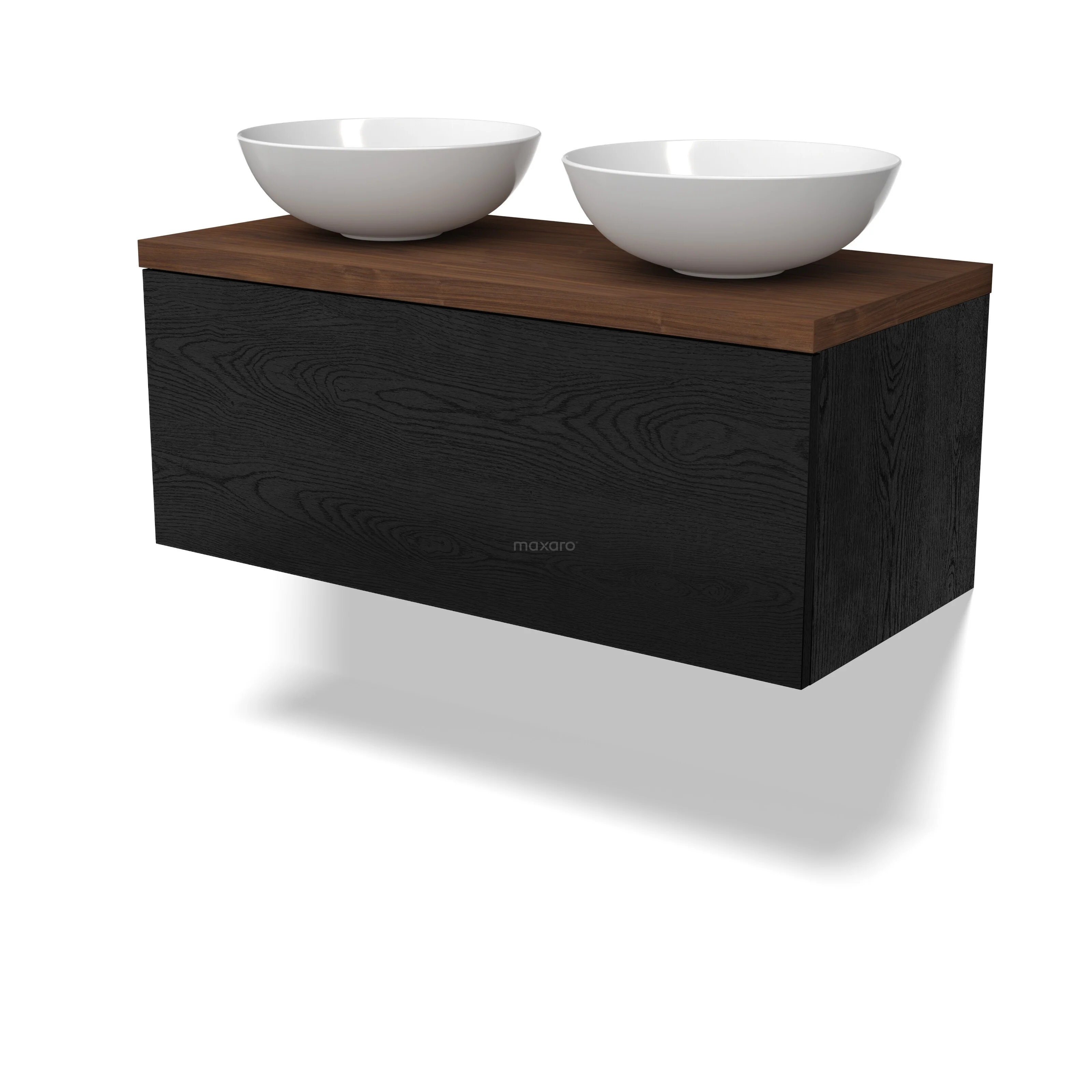 Modulo Plato Badmöbel mit Aufsatzwaschbecken | 100 cm Schwarze Eiche Flach front Walnuss blatt 1 Schublade