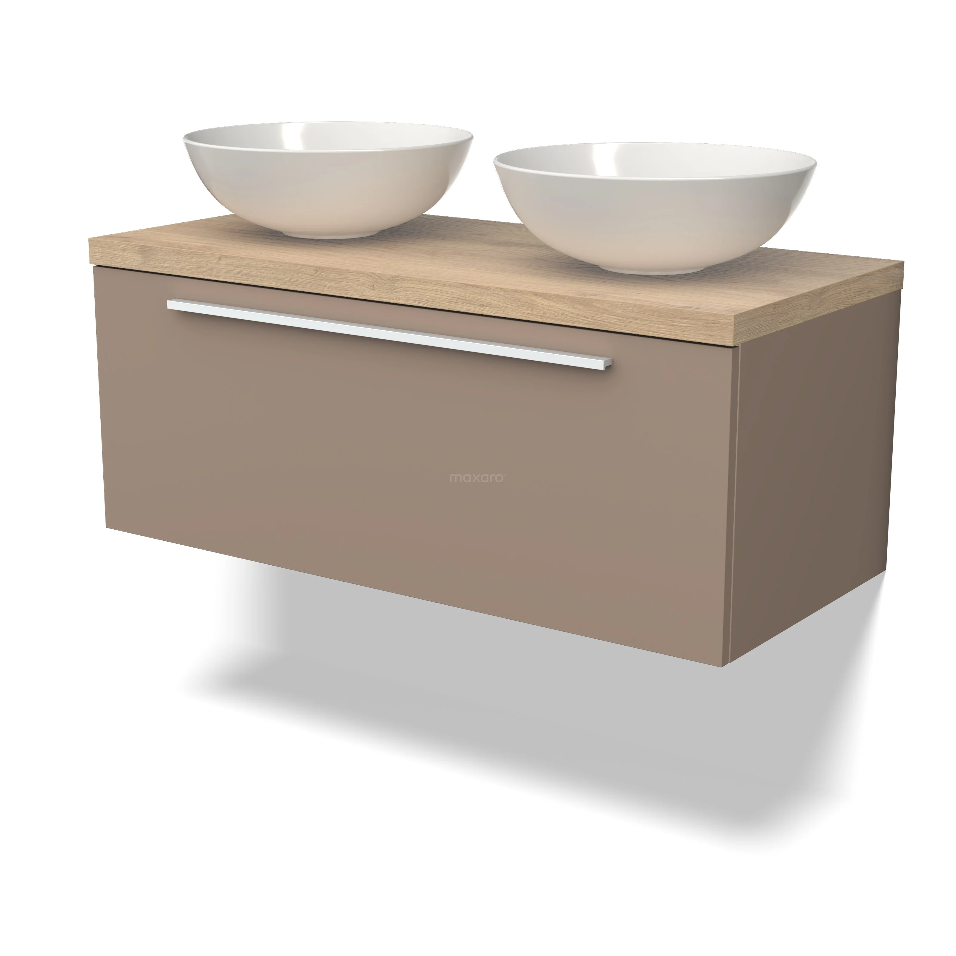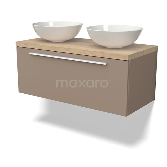 Modulo Plato Badmöbel mit Aufsatzwaschbecken | 100 cm Taupe Flach front Hellbraune Eiche blatt 1 Schublade