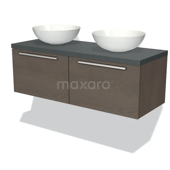 Modulo Plato Badmöbel mit Aufsatzwaschbecken | 120 cm Dunkelbraune Eiche Flach front Dunkelgrau blatt 2 nebeneinanderliegende Schubladen