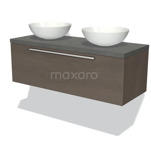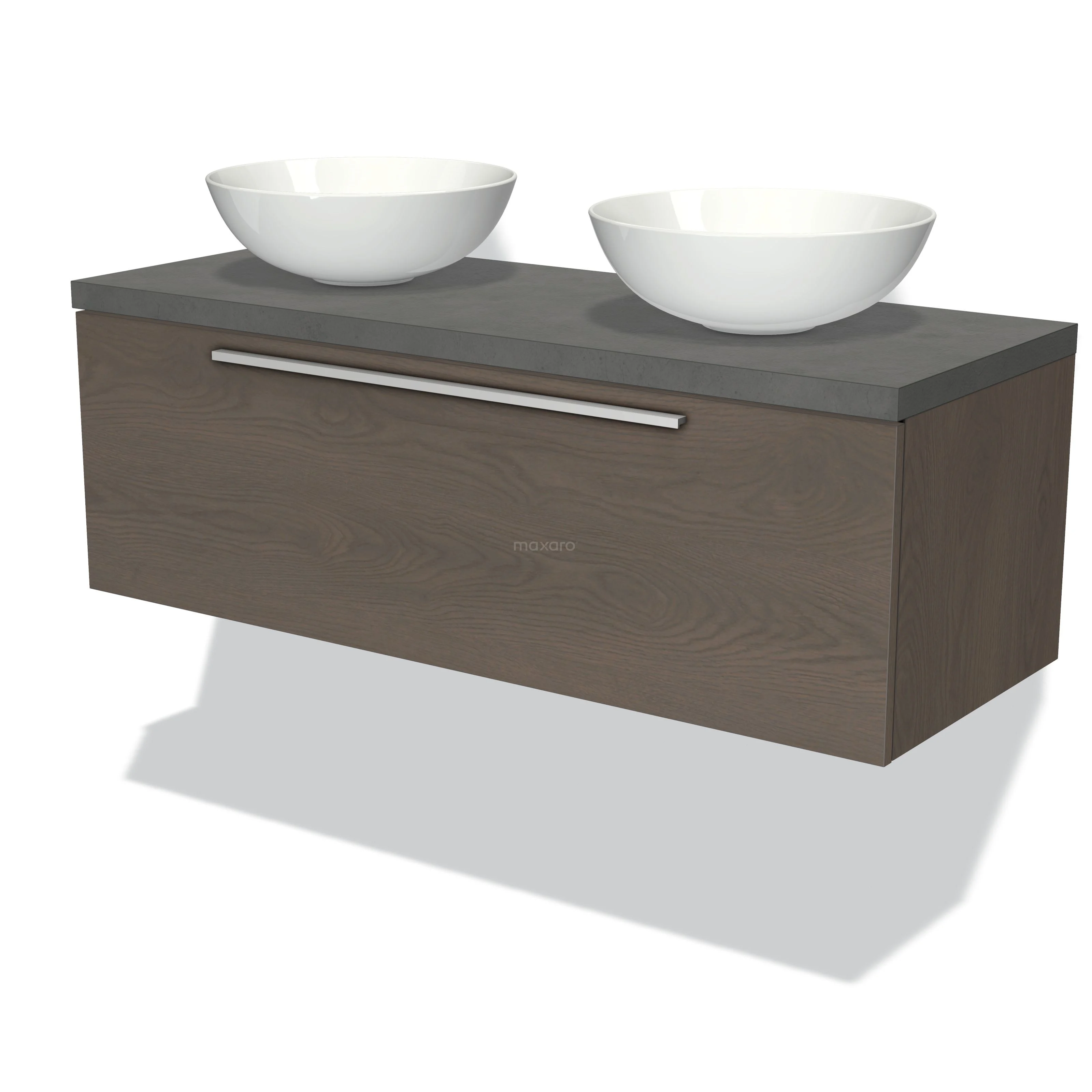 Modulo Plato Badmöbel mit Aufsatzwaschbecken | 120 cm Dunkelbraune Eiche Flach front Dunkelgrauer Beton blatt 1 Schublade