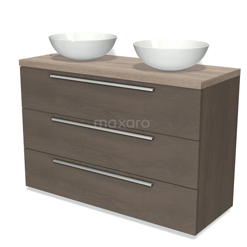 Modulo Plato Badmöbel mit Aufsatzwaschbecken | 120 cm Dunkelbraune Eiche Flach front Eiche blatt 3 Schubladen