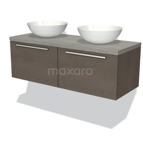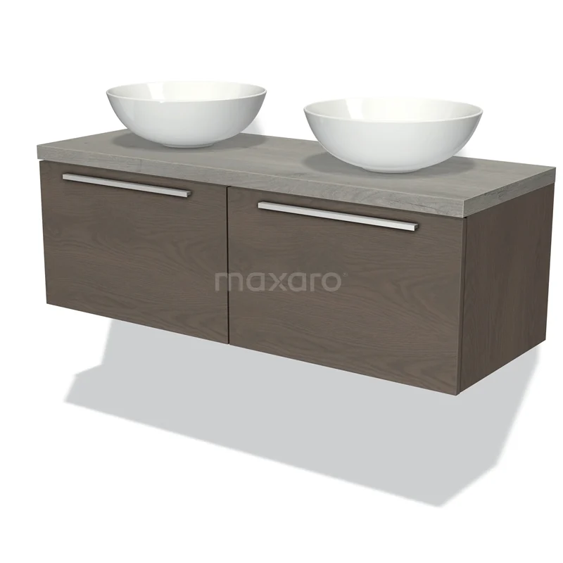 Modulo Plato Badmöbel mit Aufsatzwaschbecken | 120 cm Dunkelbraune Eiche Flach front Graue Eiche blatt 2 nebeneinanderliegende Schubladen