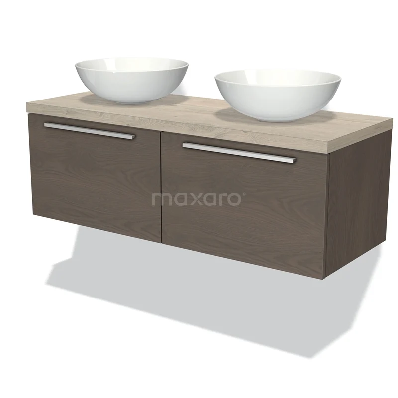 Modulo Plato Badmöbel mit Aufsatzwaschbecken | 120 cm Dunkelbraune Eiche Flach front Hellgraue Eiche blatt 2 nebeneinanderliegende Schubladen