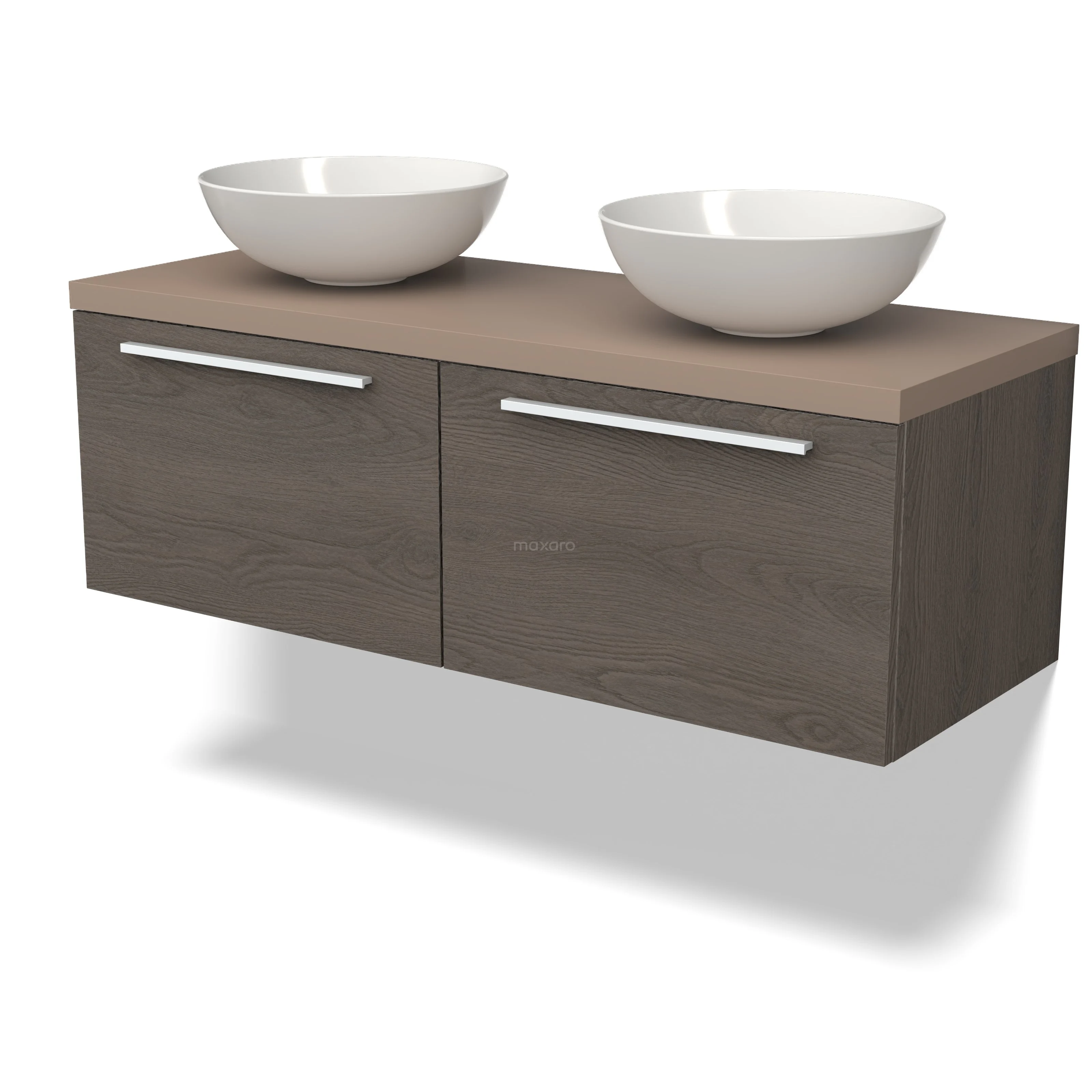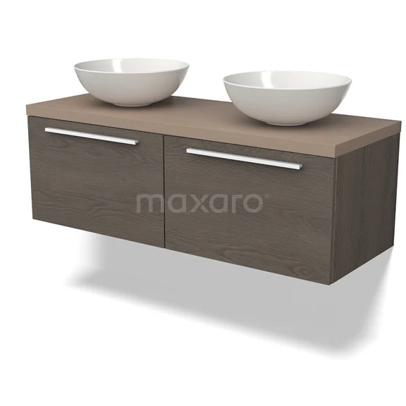 Modulo Plato Badmöbel mit Aufsatzwaschbecken | 120 cm Dunkelbraune Eiche Flach front Taupe blatt 2 nebeneinanderliegende Schubladen