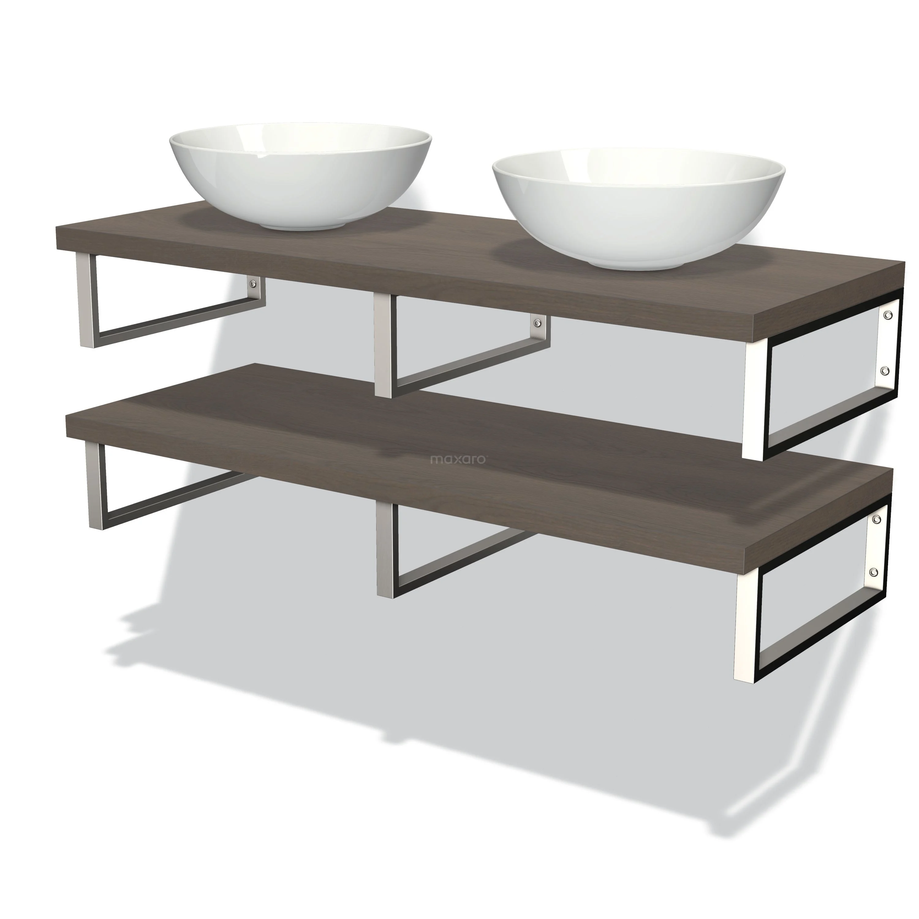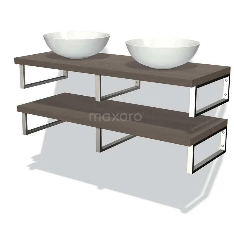 Modulo Plato Badmöbel mit Aufsatzwaschbecken | 120 cm Dunkelbraune Eiche front Dunkelbraune Eiche blatt 2 Waschtischplatten