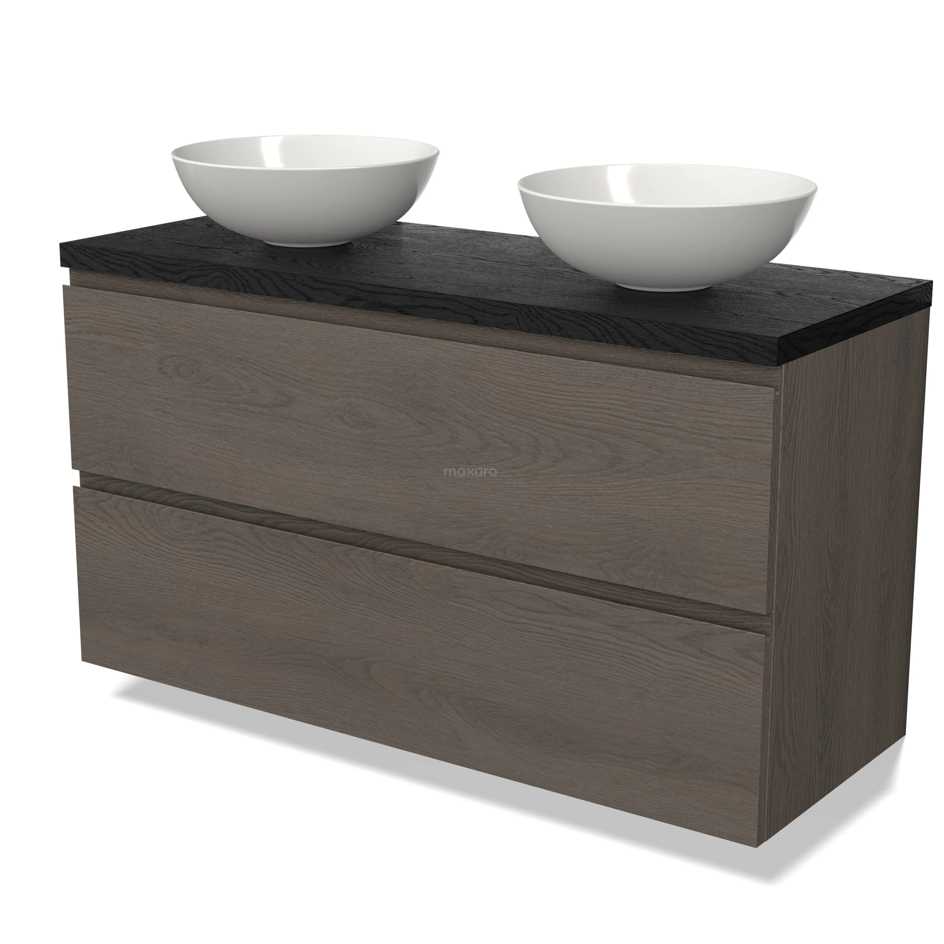 Modulo Plato Badmöbel mit Aufsatzwaschbecken | 120 cm Dunkelbraune Eiche Grifflos front Schwarze Eiche blatt 2 übereinanderliegende Schubladen