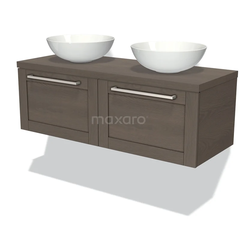 Modulo Plato Badmöbel mit Aufsatzwaschbecken | 120 cm Dunkelbraune Eiche Rahmen front Dunkelbraune Eiche blatt 2 nebeneinanderliegende Schubladen