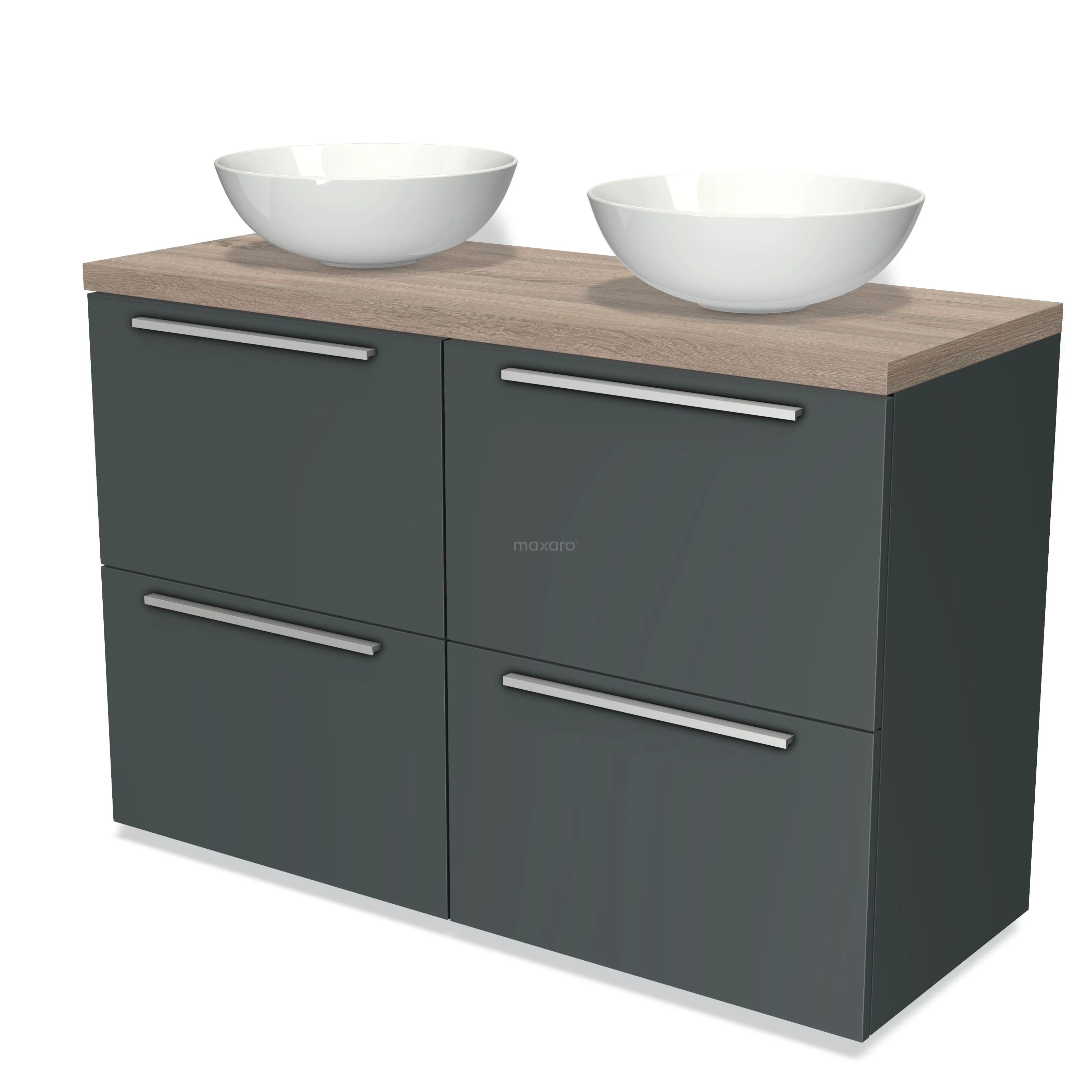 Modulo Plato Badmöbel mit Aufsatzwaschbecken | 120 cm Dunkelgrau Flach front Eiche blatt 4 hohe Schubladen