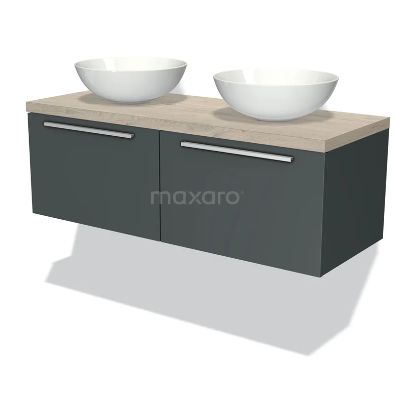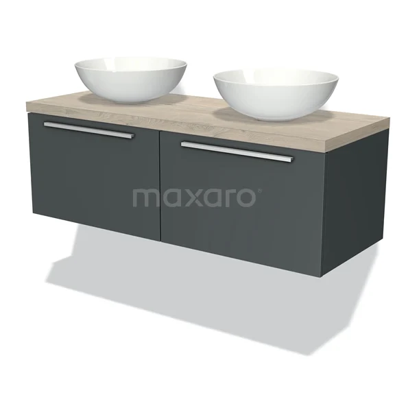 Modulo Plato Badmöbel mit Aufsatzwaschbecken | 120 cm Dunkelgrau Flach front Hellgraue Eiche blatt 2 nebeneinanderliegende Schubladen