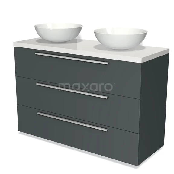 Modulo Plato Badmöbel mit Aufsatzwaschbecken | 120 cm Dunkelgrau Flach front Hochglanz Weiß blatt 3 Schubladen
